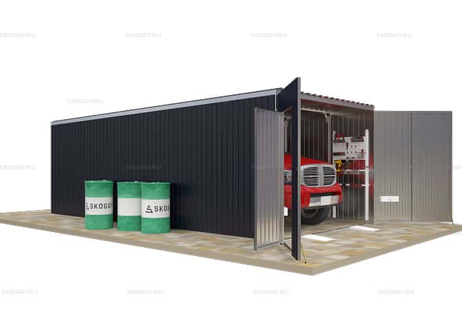 Гараж для автомобиля 7м Skoggy Max подойдет даже для крупногабаритного транспорта. Также вы можете дополнить контейнер системами хранения инвентаря и пандусом, что обеспечит дополнительное удобство при эксплуатации.