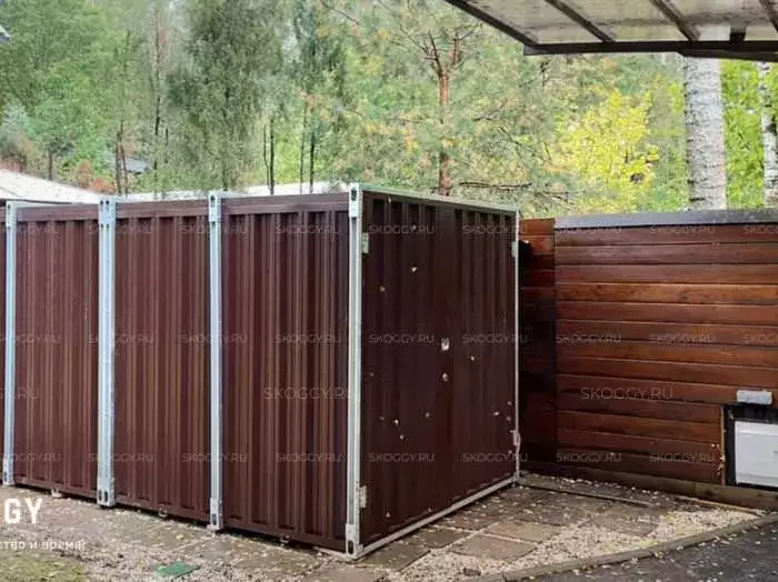 По своей конструкции контейнер Skoggy представляет модульное сооружение, которое состоит из сборных элементов. При сборке элементы устанавливаются один в другой и фиксируются болтовыми соединениями. Конструкция дверей, крыши и стен представляют собой каркас из сложногнутого профиля толщиной 0,7 мм. Каркас обшивается профлистом НС-35 толщиной 0,45-0,55 мм. Такая толщина оптимальна для обеспечения прочности и устойчивости конструкции.