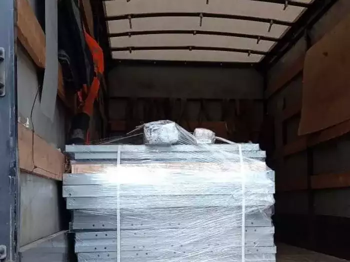 Так как предполагалась самостоятельная сборка на участке, то наши специалисты предварительно собирали гараж на производстве перед отгрузкой, чтобы проверить качество. Инструкция по сборке гаража была приложена к пакету документов. Доставляли постройку манипулятором в разобранном виде.
