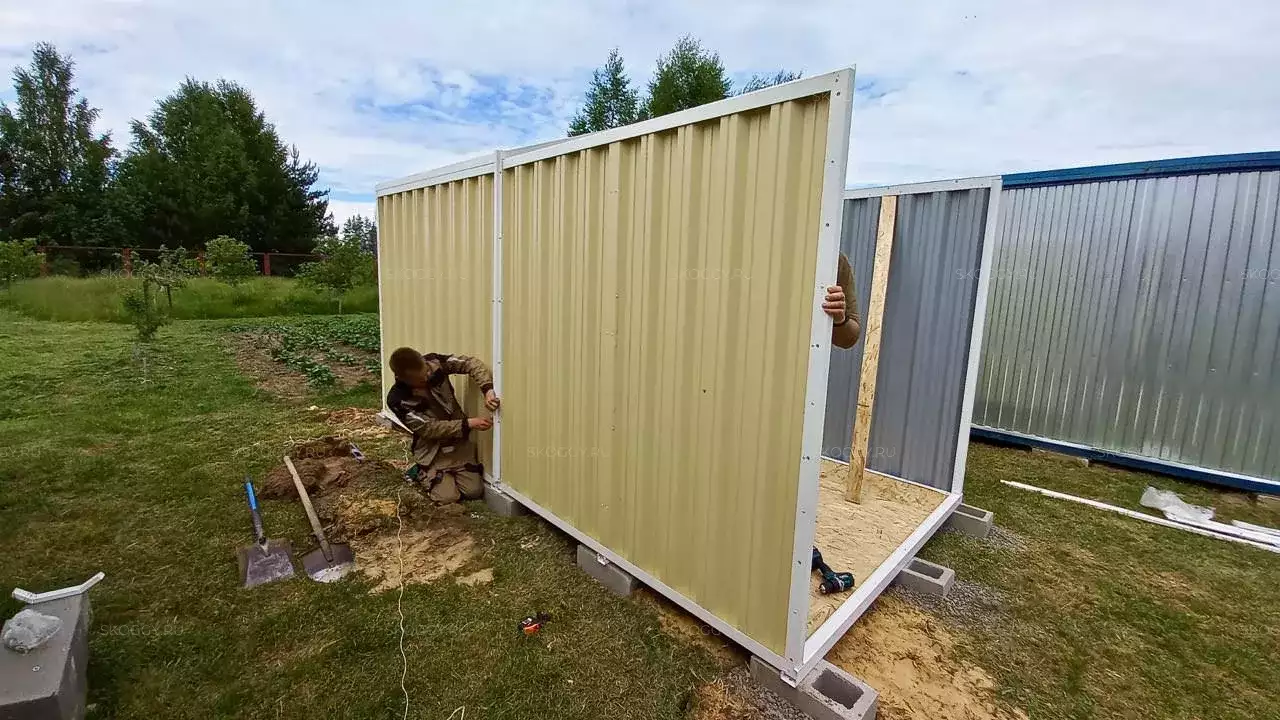 Весь диалог вёлся по телефону и WhatsApp, так как приехать к нам у Евгения не получалось. Согласовав все параметры, а именно цвет (RAL 1015 слоновая кость, потому что гараж Евгения как раз в таком же цвете), тип крыши (двухскатная), длину в 4 м, мы приняли первую часть оплаты и приступили к заказу.