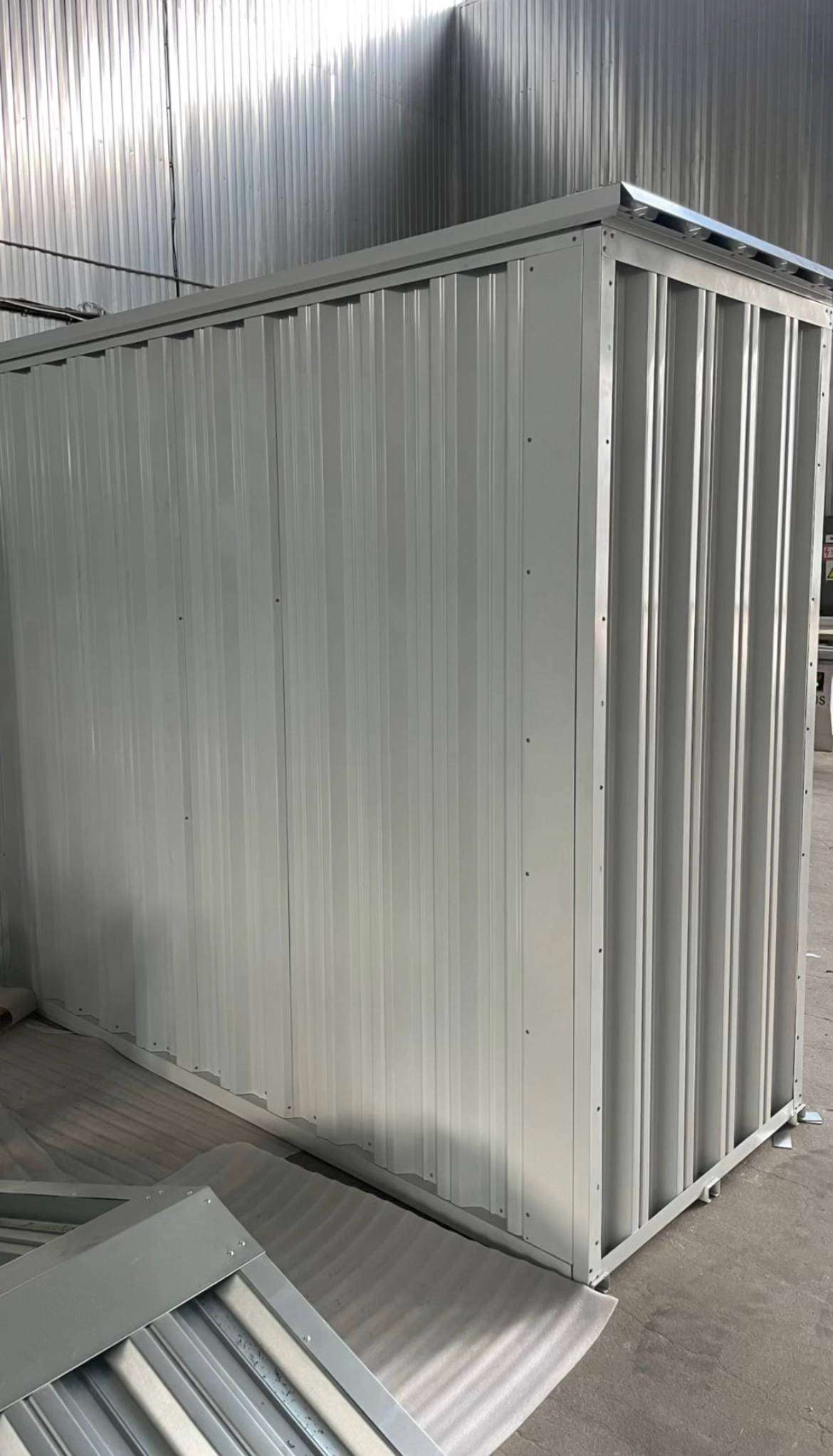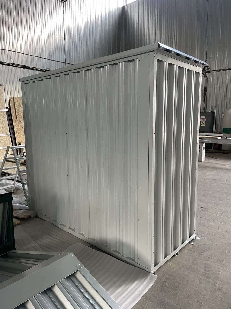 Нами была изготовлена конструкция дровницы размером 1,03 х 2,5 х 2,1 м с уменьшенной воротной группой размером 1,5 м в в светло-сером цвете RAL 7025.