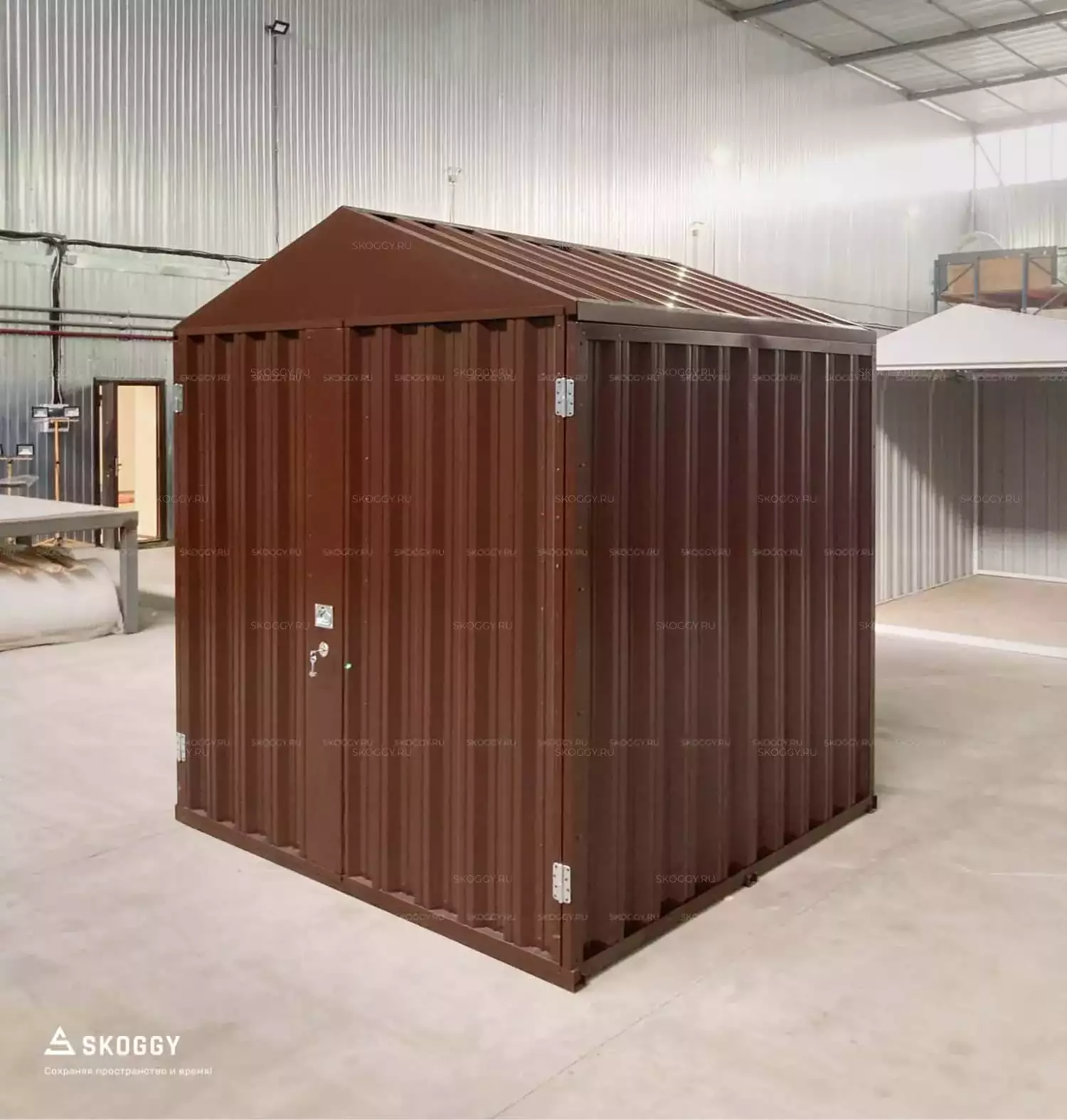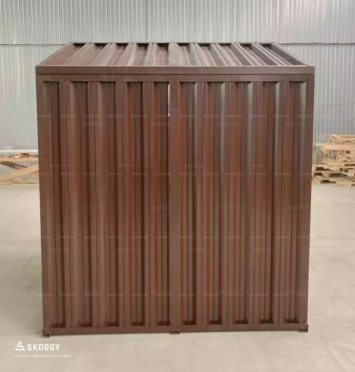 Это оптимальный вариант для качественного хранения - двускатная крыша надежно защищает от сильного дождя, что позволяет сохранить дрова в надлежащем состоянии. Несмотря на компактный размер, блок-контейнер выдерживает нагрузку до 2,5 тонн.