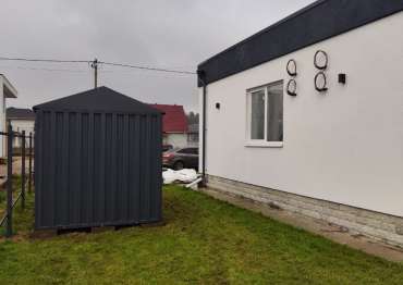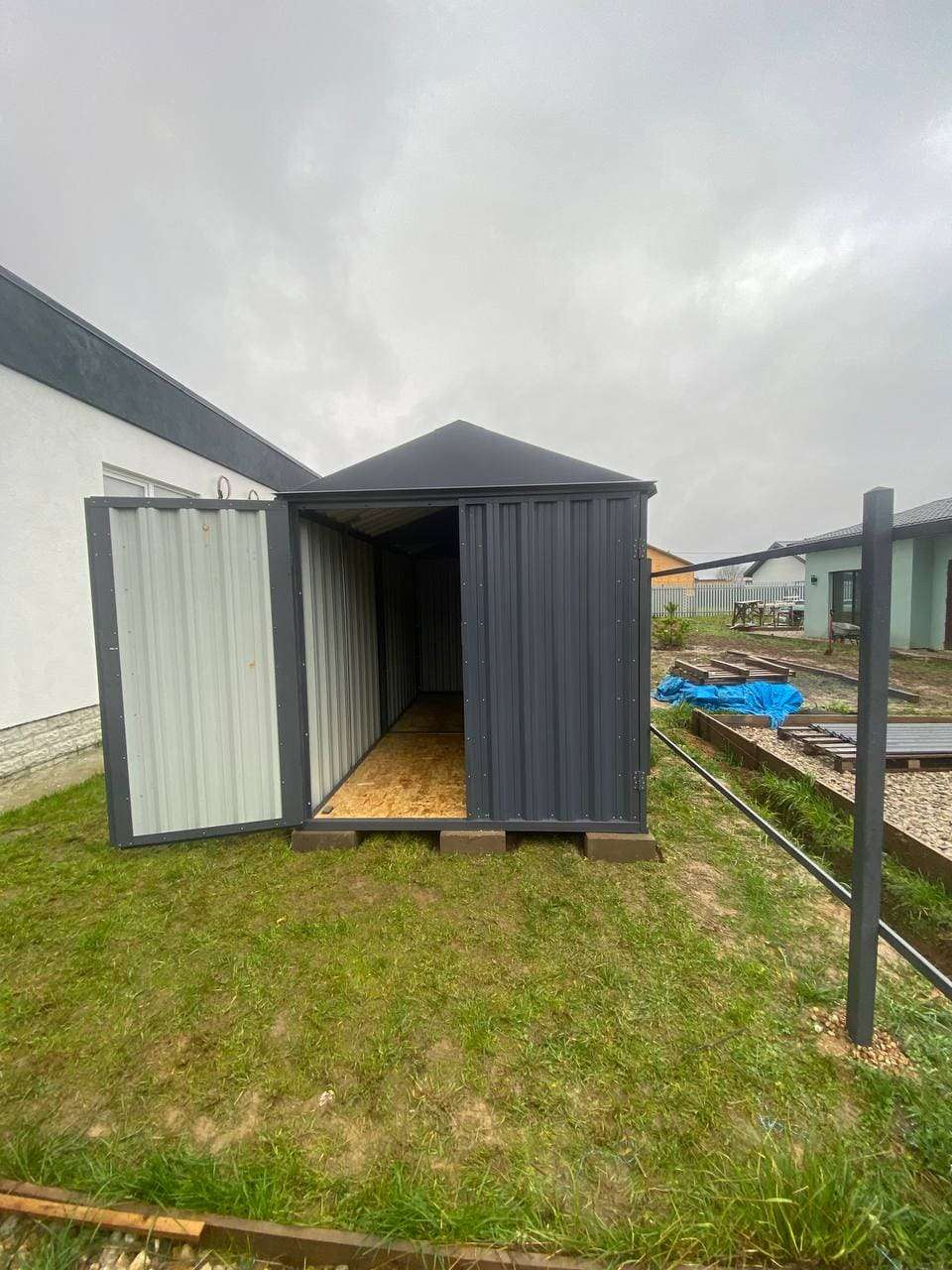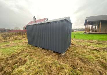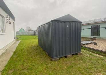 Проект: два 4-метровых хозблока для хранения хозяйственных вещей в графитовом цвете.