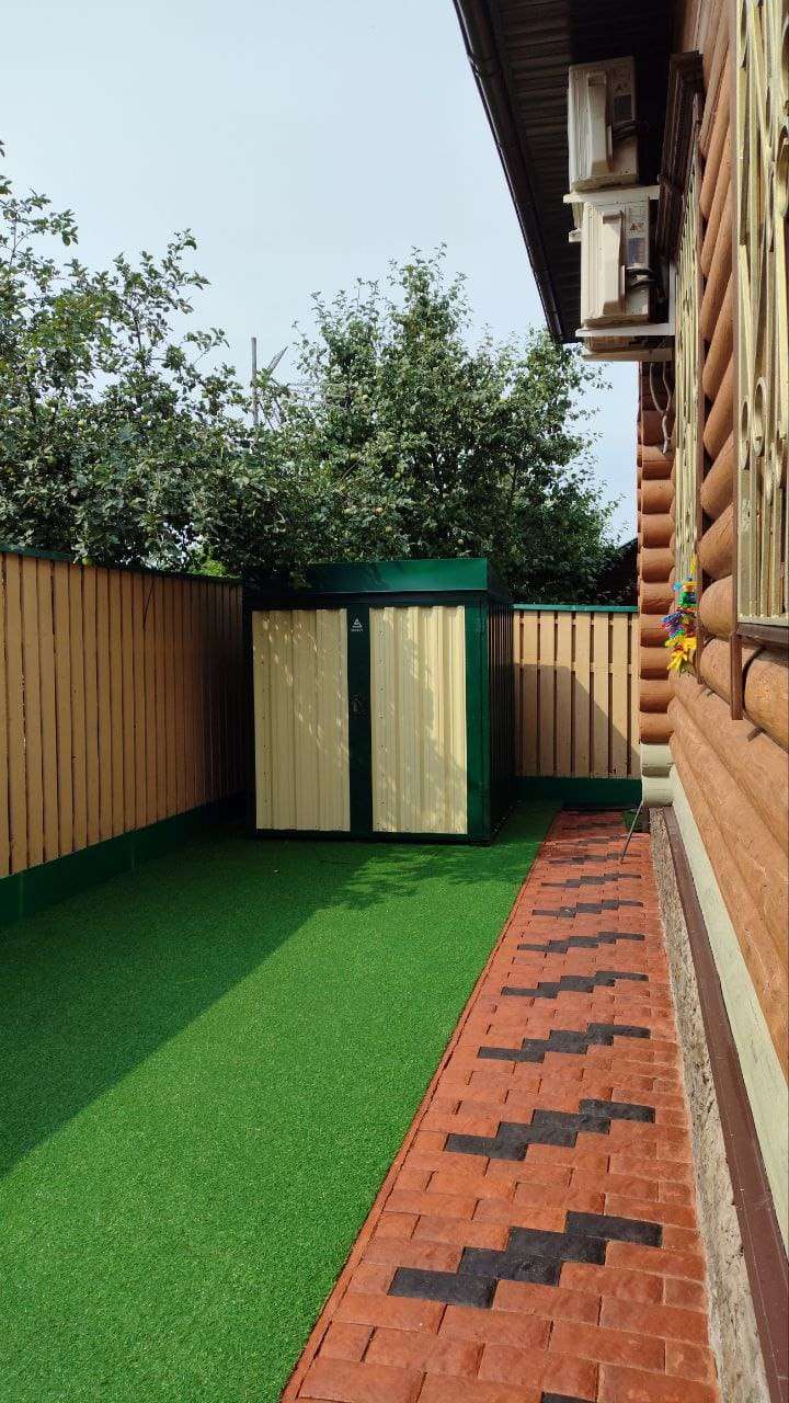 Проект: два хозблока 2 х 2 х 2,3 м и 0,7 х 2 х 2,3 м для хранения садовой техники и инвентаря в двойной расцветке.