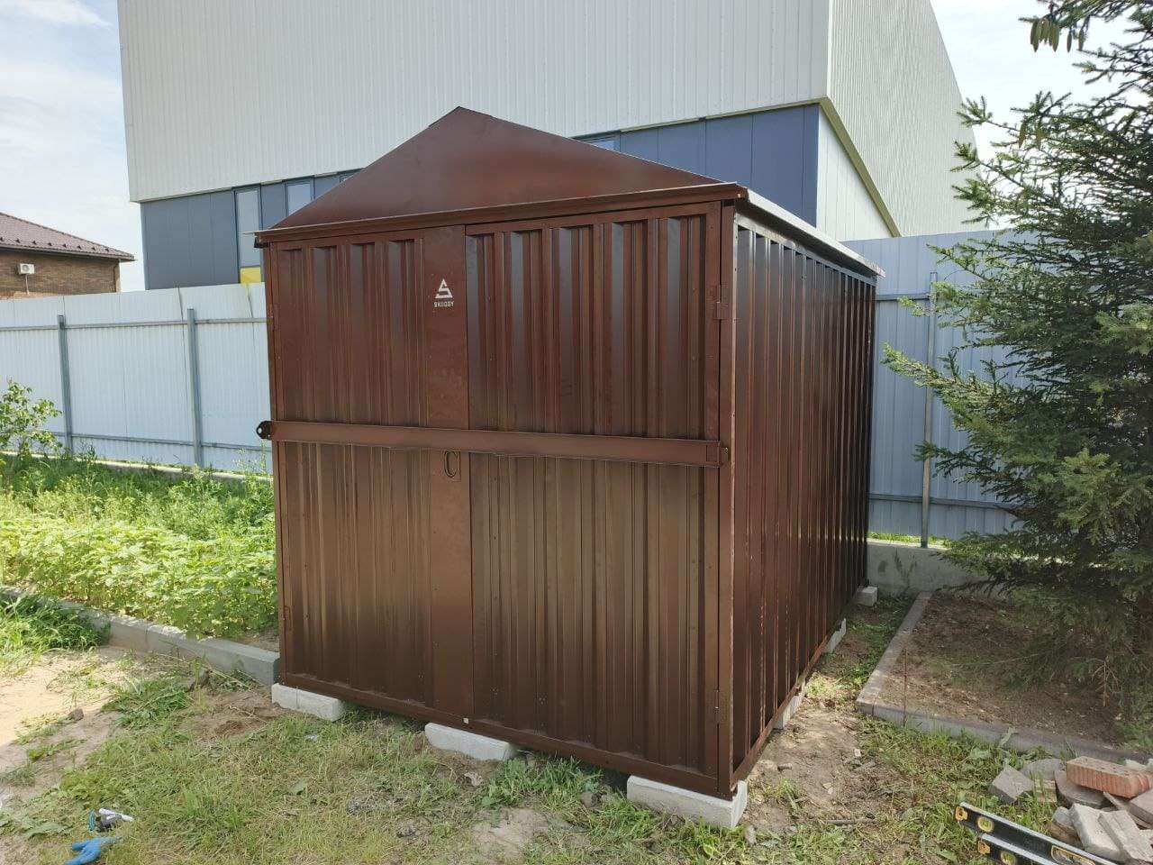 Нами была изготовлена стандартная 3-метровая конструкция с двускатной крышей и торцевой воротной группой в стильном шоколадно-коричневом цвете RAL 8017.