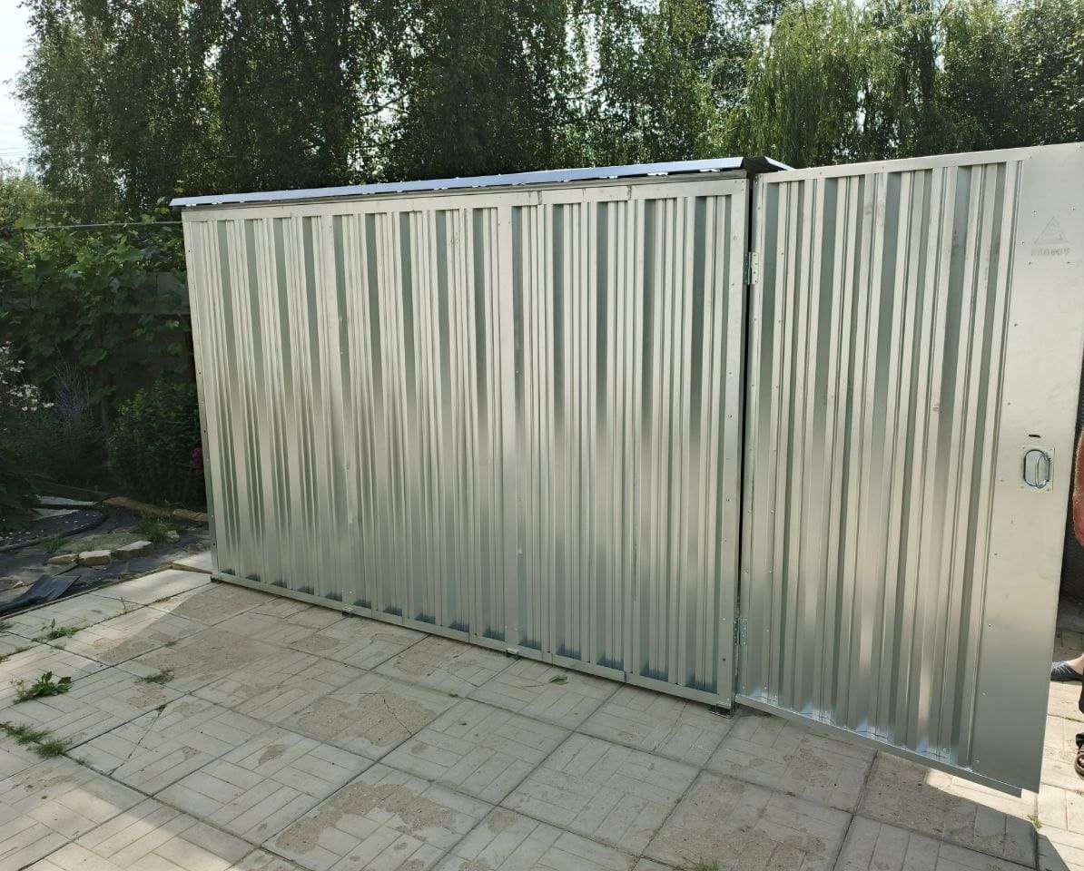 Также была изготовлена вторая стандартная 3-метровая конструкция с плоской крышей и торцевой воротной группой в блестящем цинковом цвете.