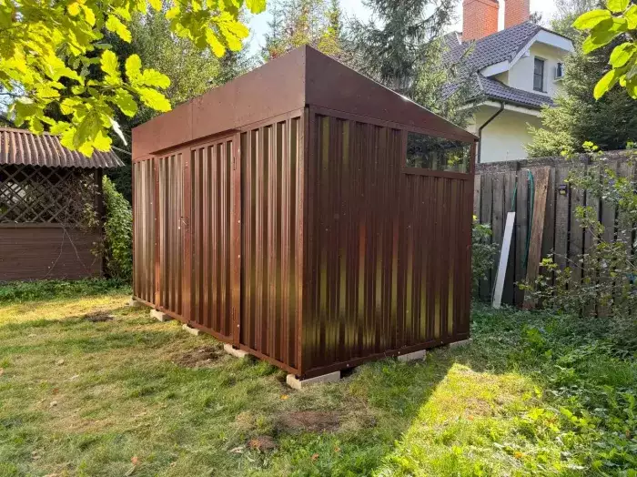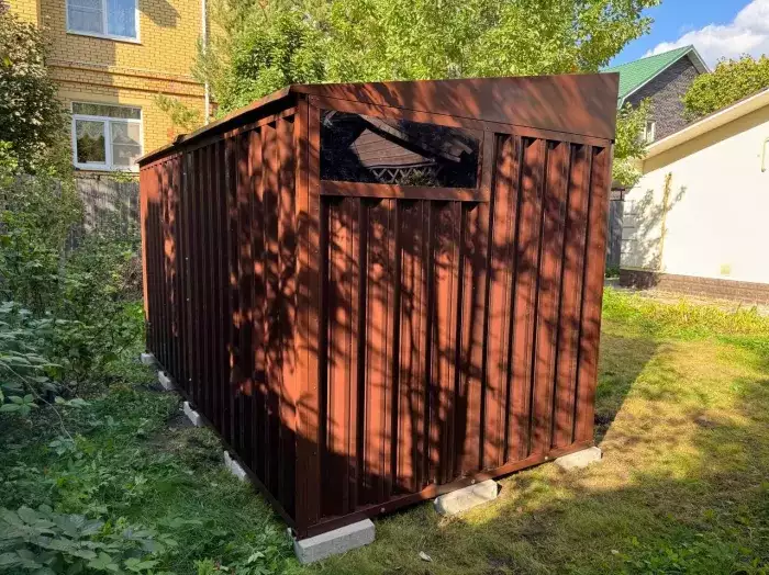 Нами были изготовлены две люксовые конструкции размером 2,03 х 3,15 х 2,4 м с плоской крышей в светло-сером цвете RAL 7004.