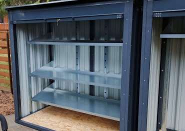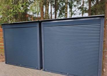 Проект: два роллетный шкафа 1,03 х 2,22 х 2,1 м для хранения садовой техники и инвентаря в графитовом цвете.