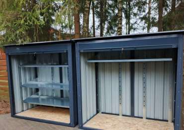 Заказчику этого проекта на участок были необходимы два шкафа для хранения садовой техники, инвентаря и прочих хозяйственных вещей.
