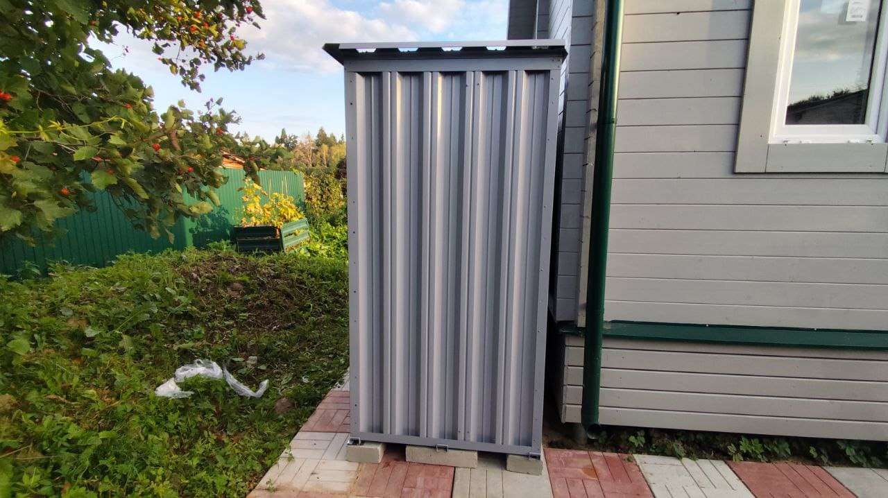 Нами были изготовлены две конструкции дровницы размером 1,03 х 2,22 х 2,1 м в сигнальном сером цвете RAL 7004. Такая расцветка была выбрана, чтобы постройки гармонировали по цвету с жилым домом на участке.