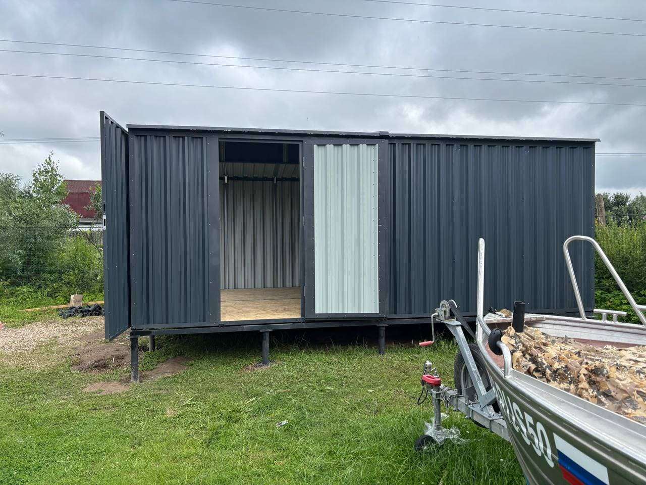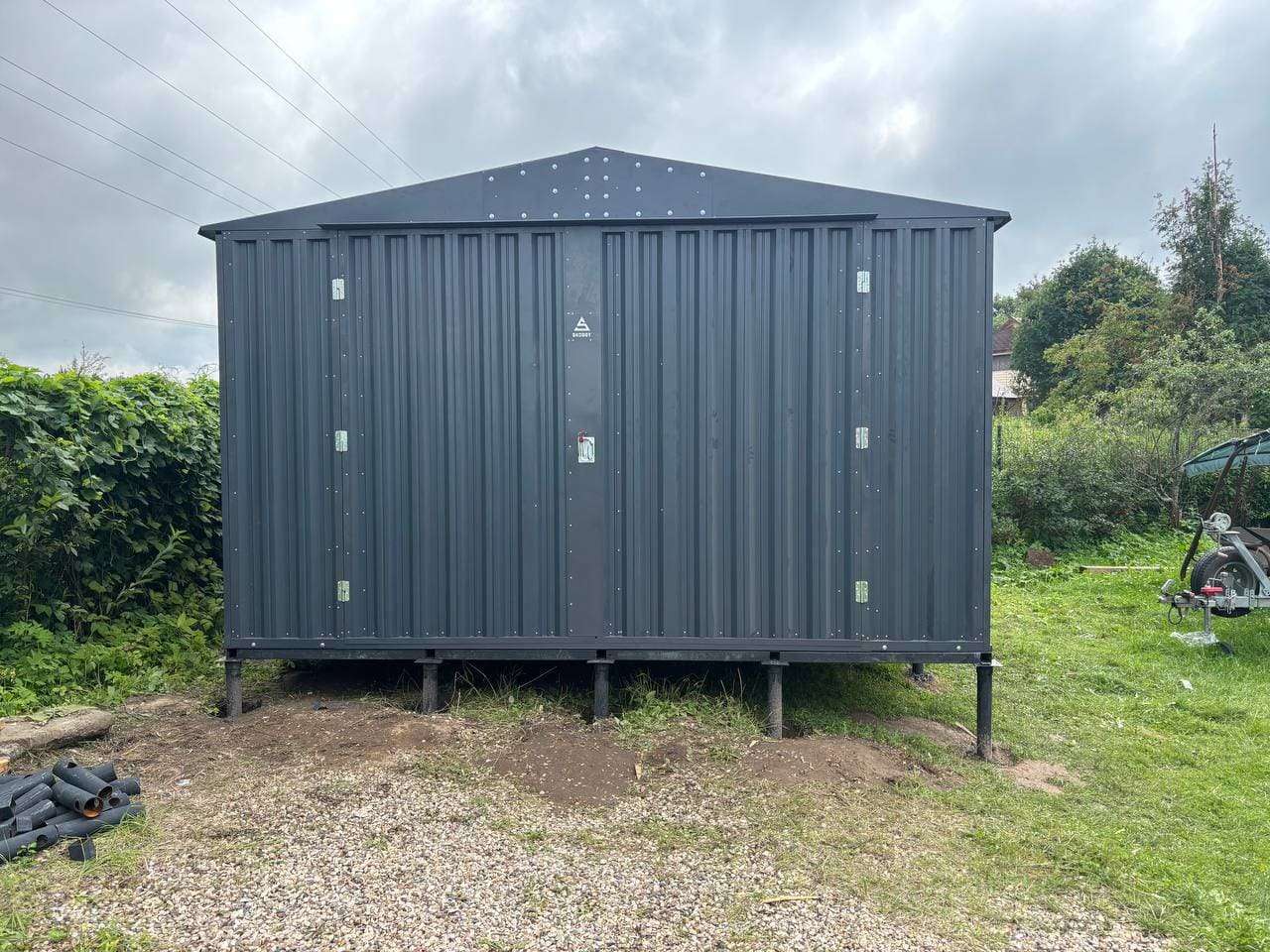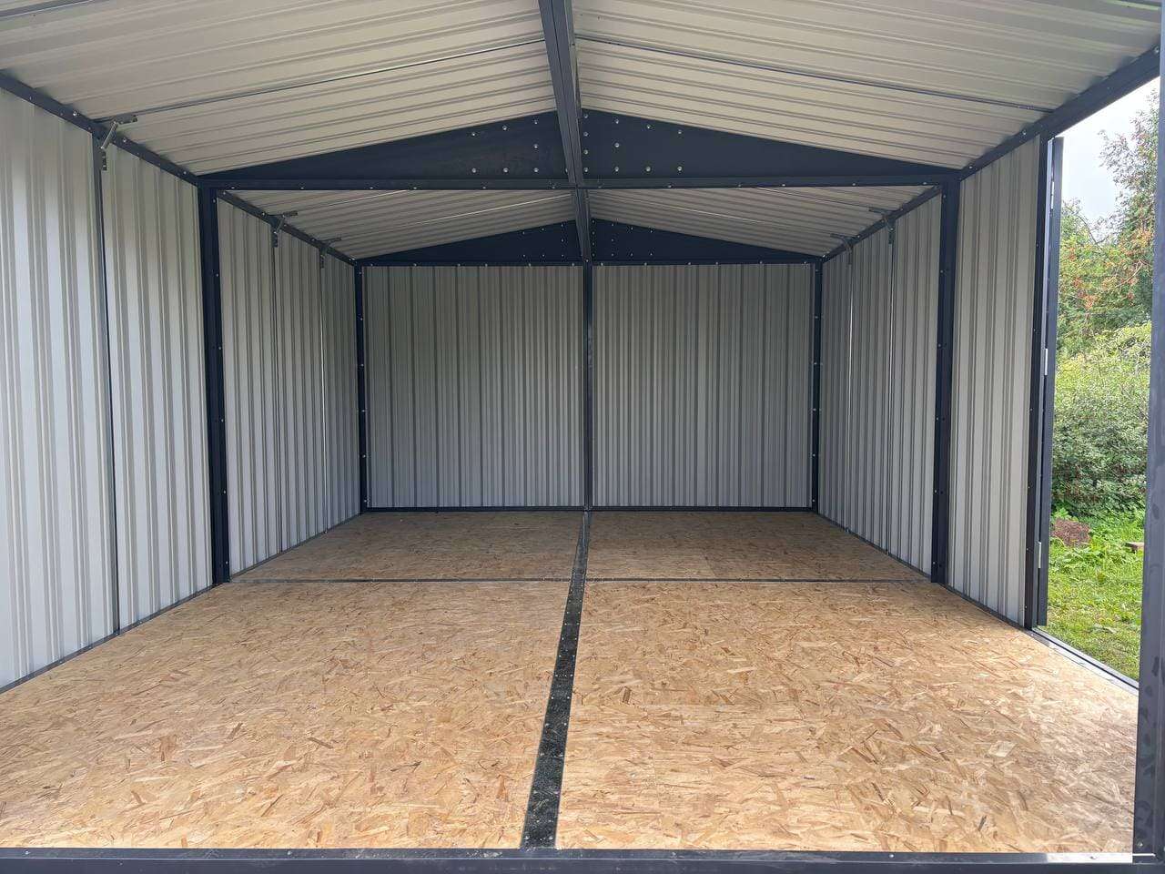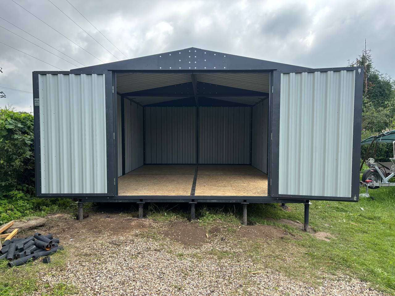 Проект: 6-метровый гараж с увеличенной высотой для хранения лодки в графитовом цвете.