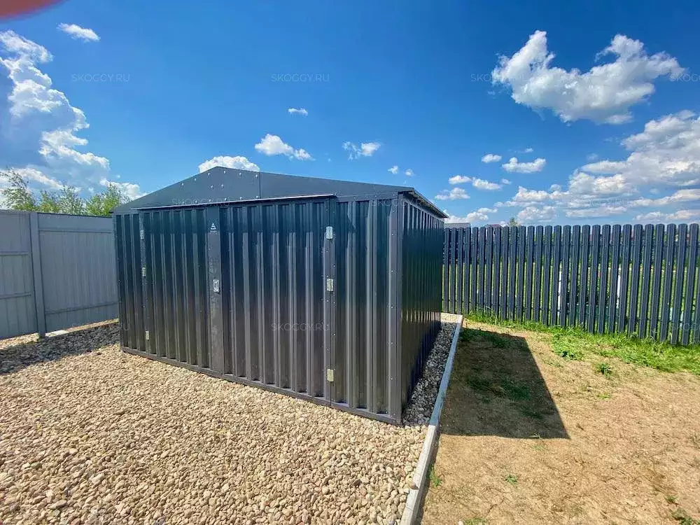 Проект: гараж 4 х 3 м для вещей с двускатной грышей в графитововм цвете.