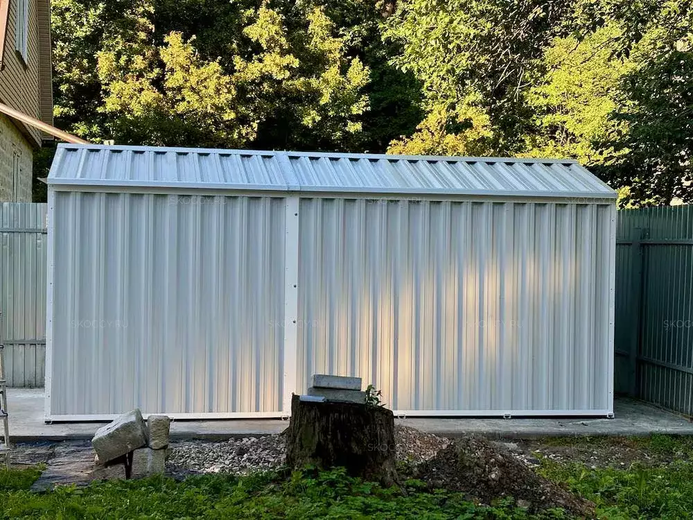 Проект: 5-метровый гараж для вещей с двускатной крышей в двойной расцветке.