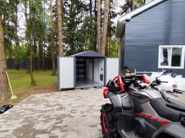 Хозблок для досок и садового инвентаря в цинковом цвете в дер. Плоски, Конаковский м.о, Тверская обл.