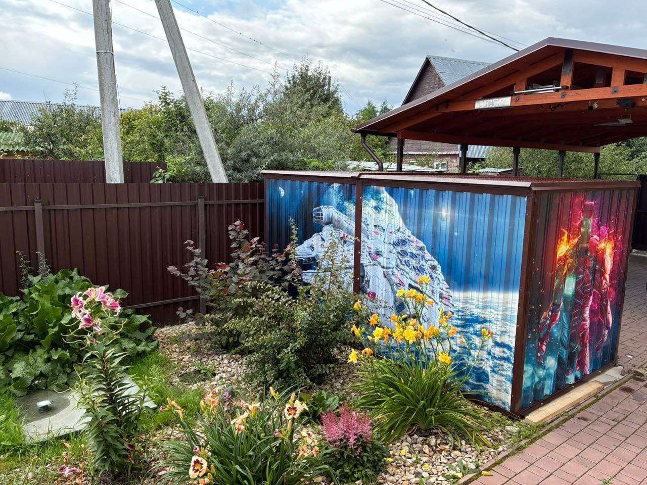 Этот проект реализован в комбинации индивидуального принта и шоколадно-коричневого цвета RAL, но у нас есть возможность окрашивания наших изделий и в другие стандартные цвета палитры RAL, нестандартные - по индивидуальному запросу. А также можно нанести на стены конструкции индивидуальный принт с вашим любимым изображением для создания своего уникального проекта, как это сделал герой нашего рассказа! Обязательно попробуйте, не пожалеете :)