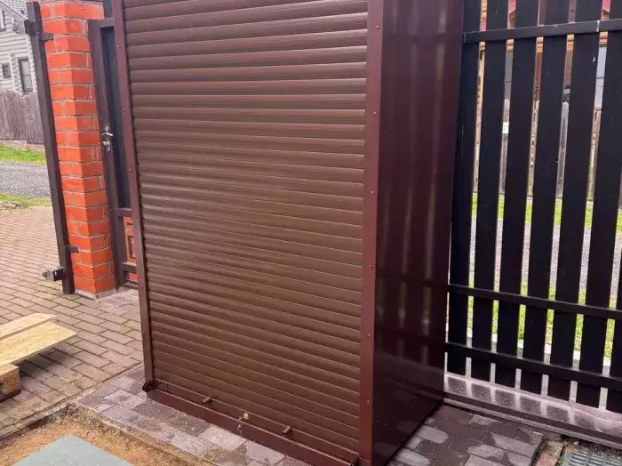 На изготовление изделия у нас ушло 15 рабочих дней. Доставляли хозблок на участок заказчика манипулятором в разобранном виде и установили возле ворот вдоль забора.