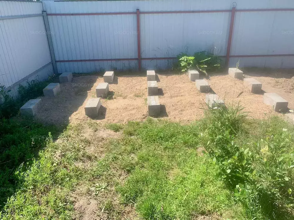 Площадку под постройку заказчик подготавливал самостоятельно. Были установлены бетонные блоки по рекомендованной нами схеме расстановки точек опор.