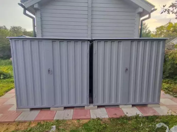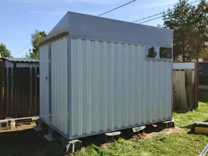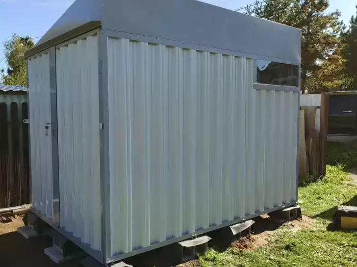Дополнительно хозблок был оборудован антивандальный засовом для большей надежности, двумя световыми окнами размером 90 х 30 см для проникновения естественного света внутрь постройки.