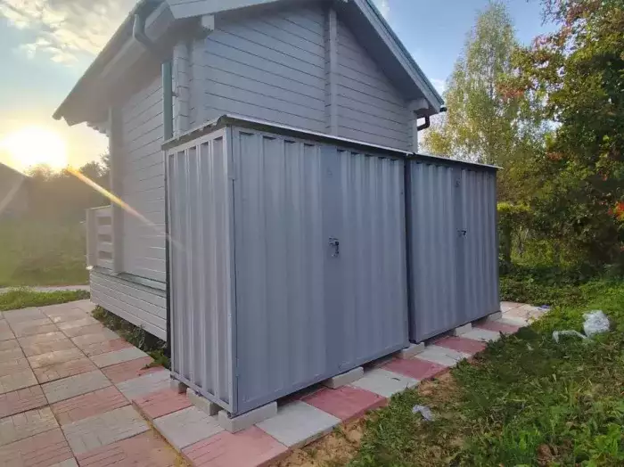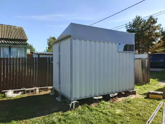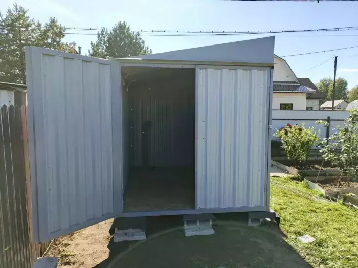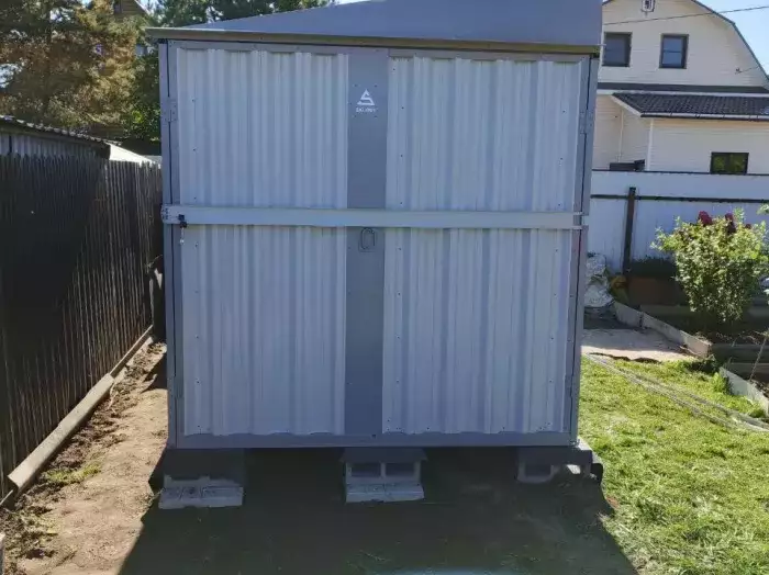 Проект: 4-метровый хозблок для хранения хозяйственных вещей в комбинированной расцветке.