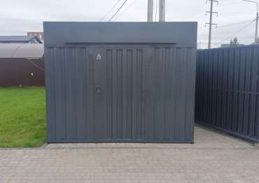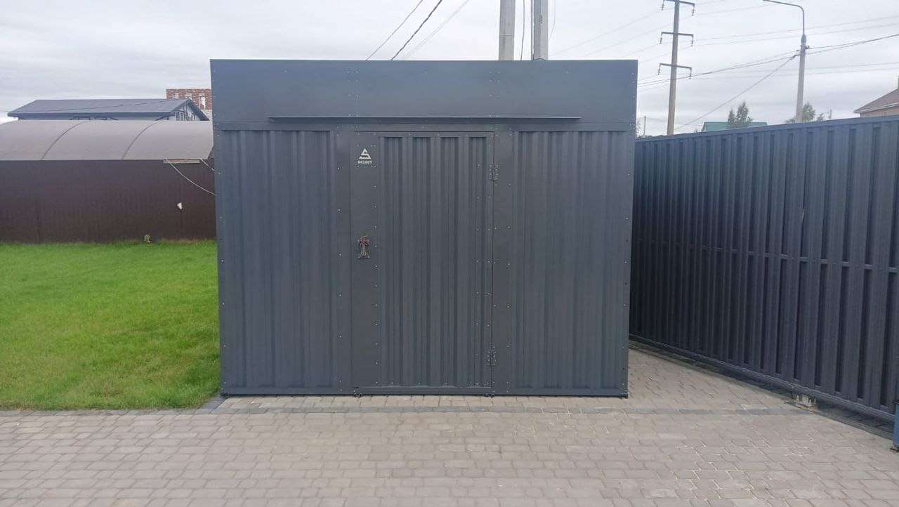 Проект: 3-метровый хозблок для хранения хозяйственных принадлежностей в графитовом цвете и с нанесением принта.
