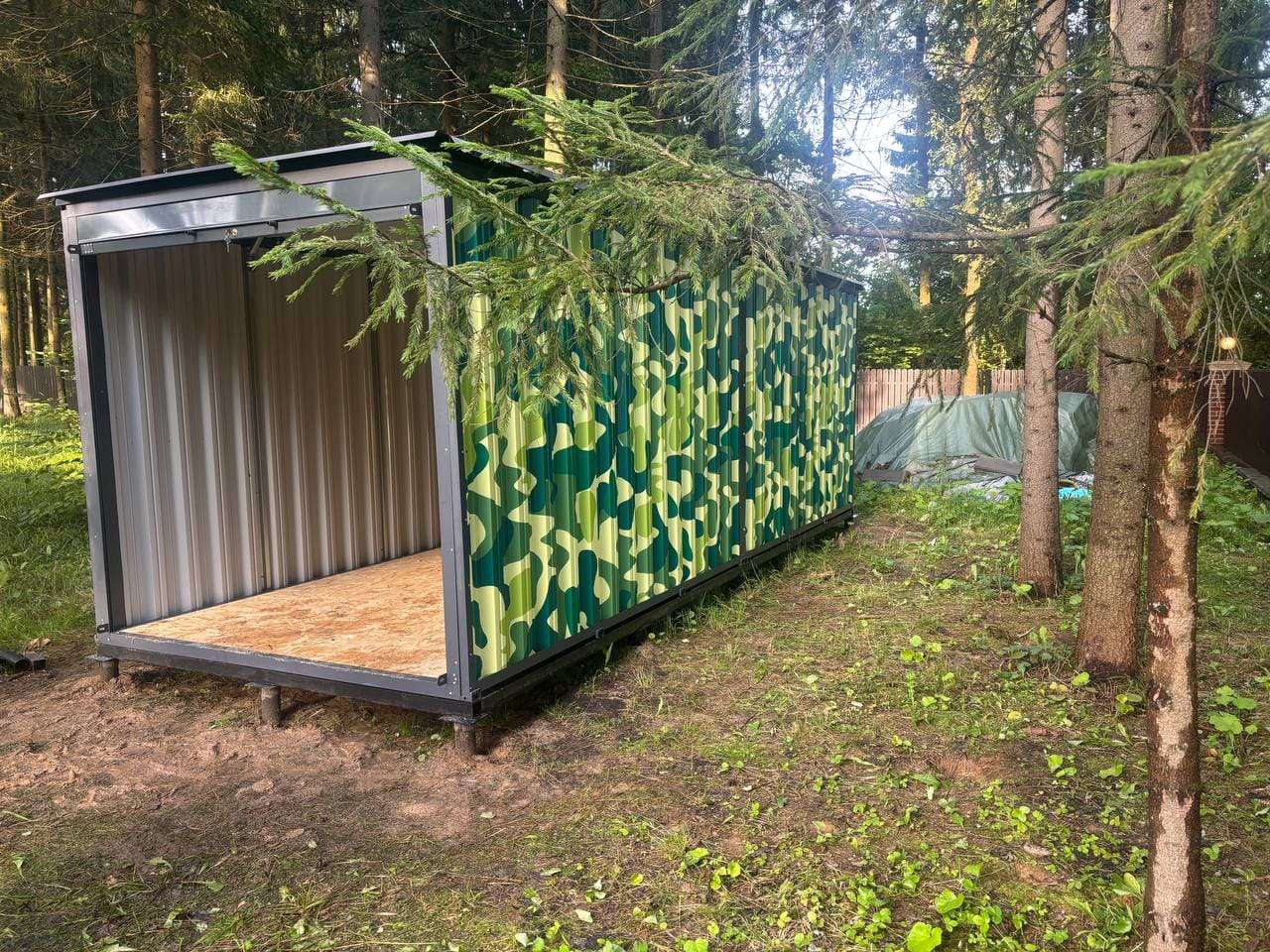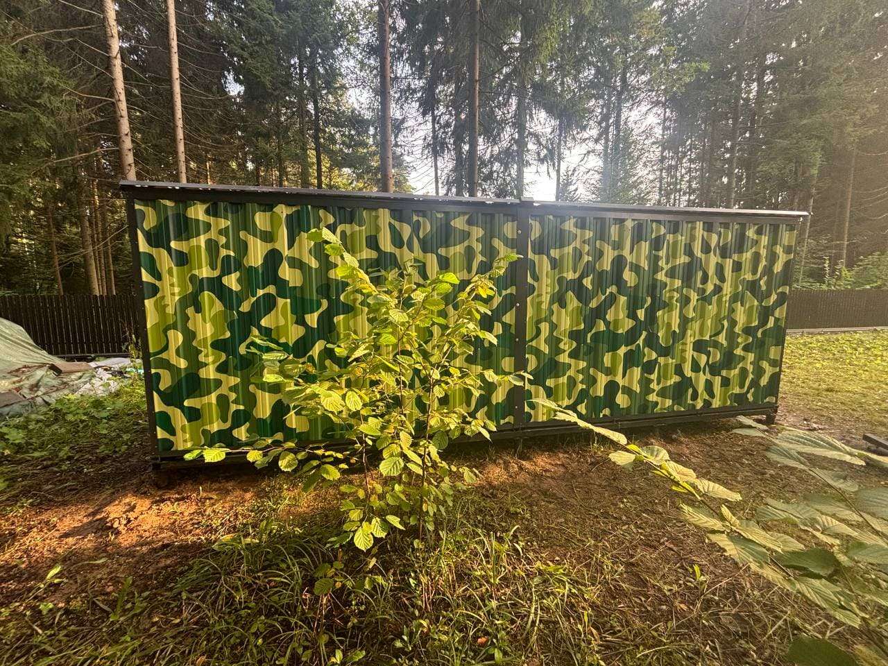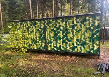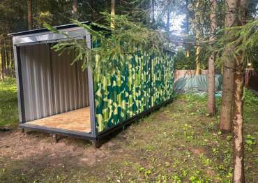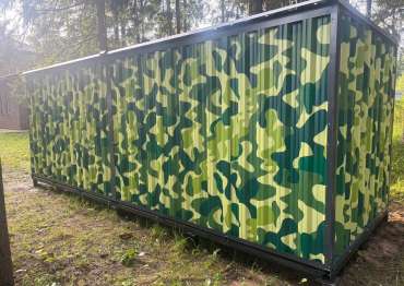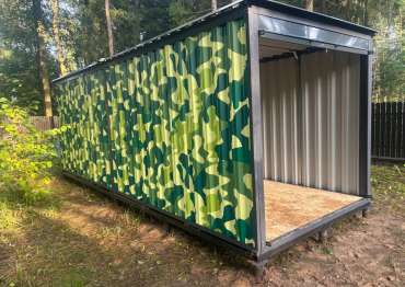 Проект: 6-метровый хозблок с рольставнями для хранения хозяйственных вещей в камуфляжной расцветкке.