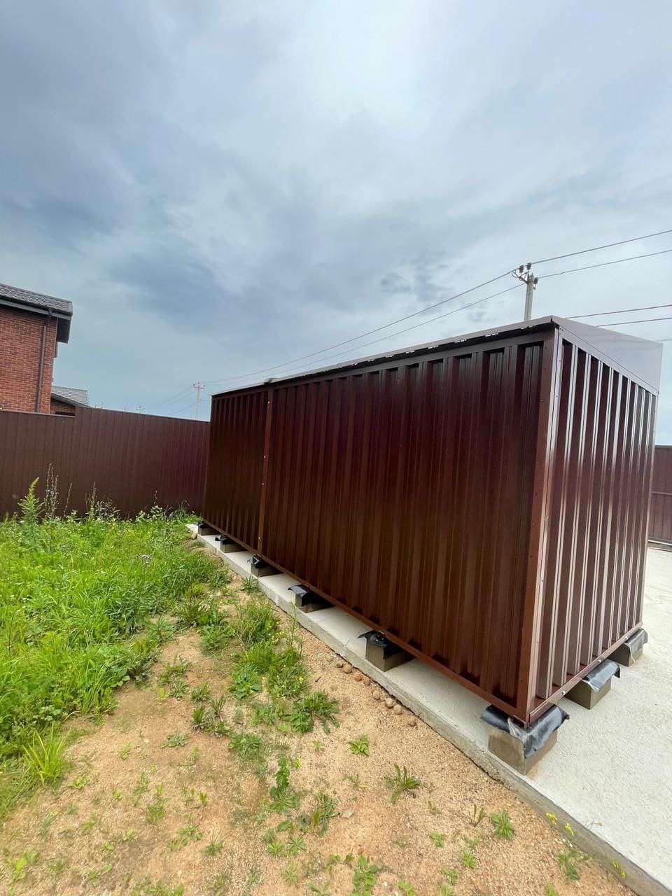 Проект: 5-метровый хозблок для хранения хозяйственных вещей в шоколадно-коричневом цвете.