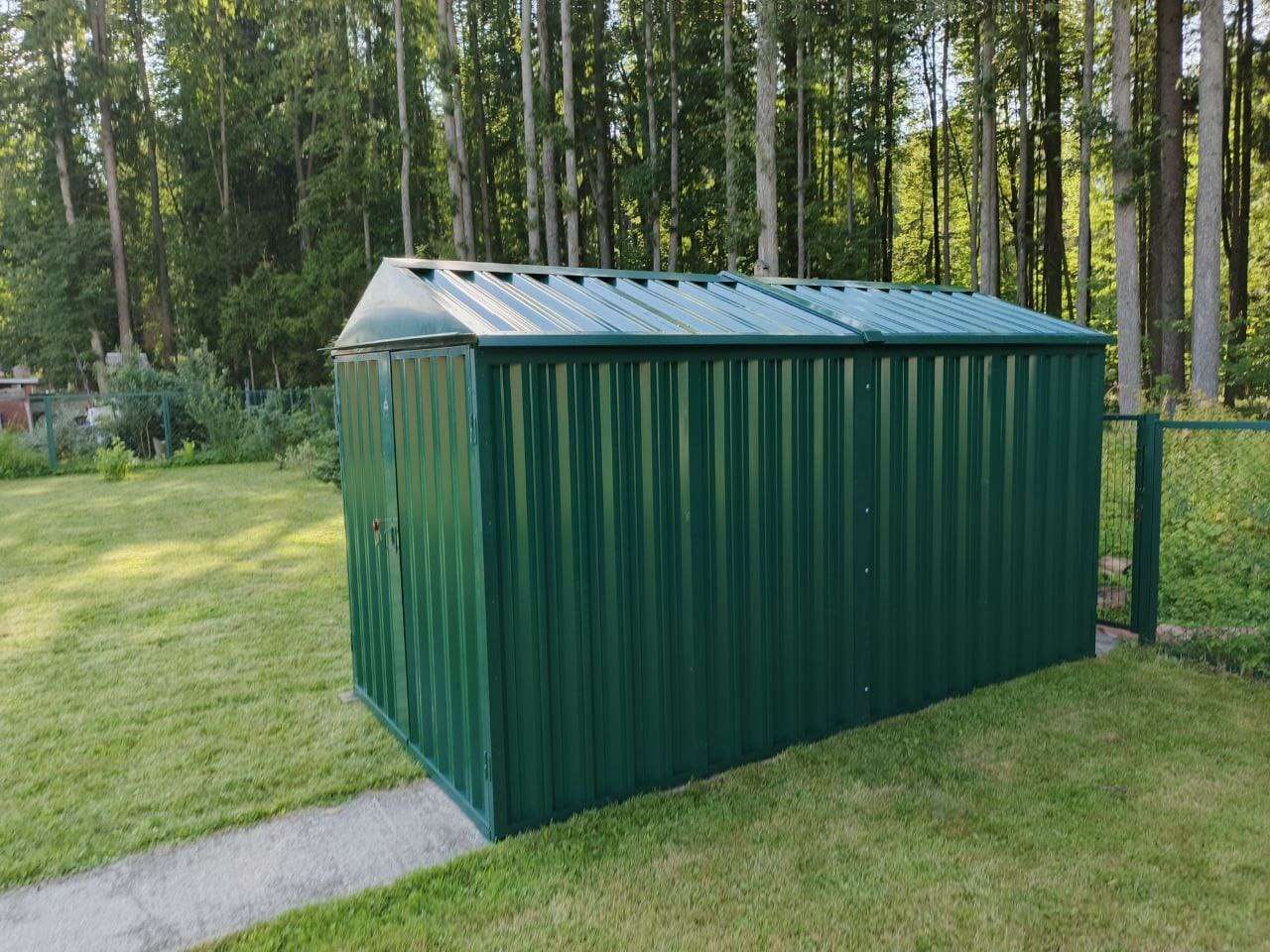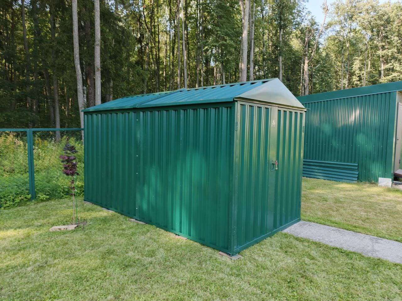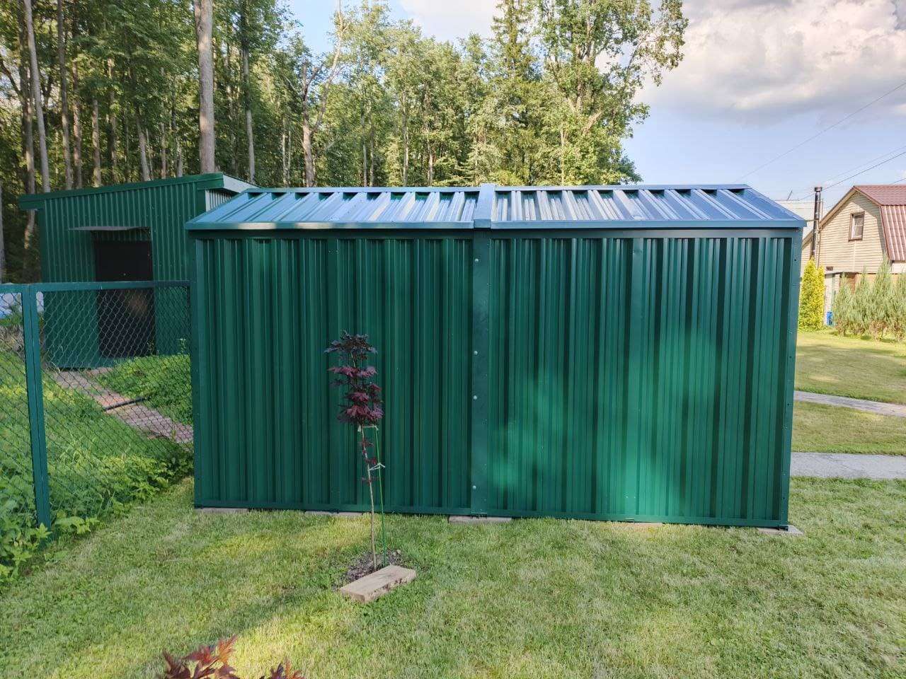 Проект: 4-метровый хозблок для хранения хозяйственных вещей в зеленом цвете.