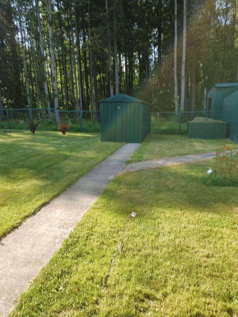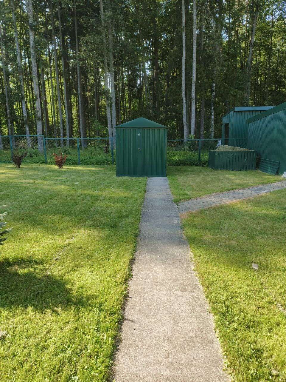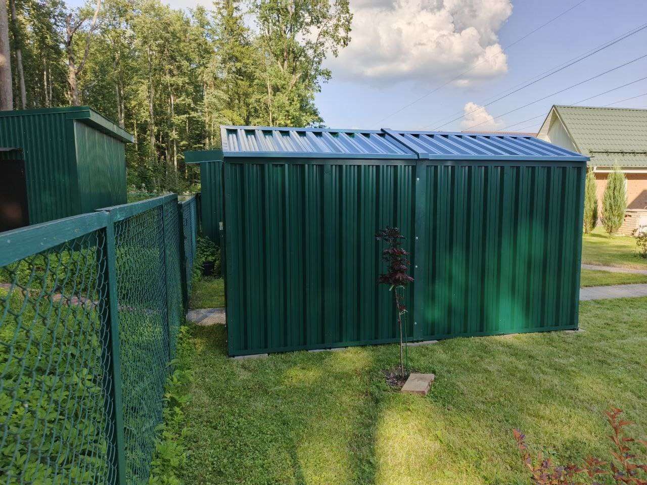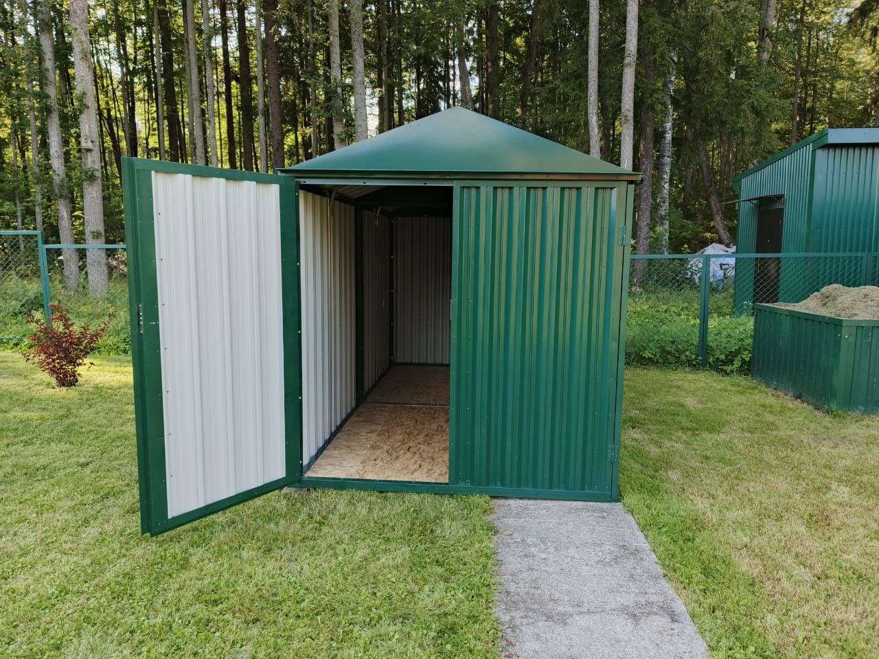 Проект: 4-метровый хозблок для хранения хозяйственных вещей в зеленом цвете.