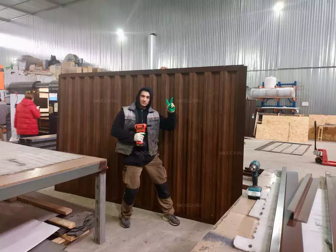 Этот контейнер выполнен с принтом под дерево, но у нас можно изготовить блок-контейнер во всех цветах стандартной палитры RAL, а нестандартные цвета по запросу.