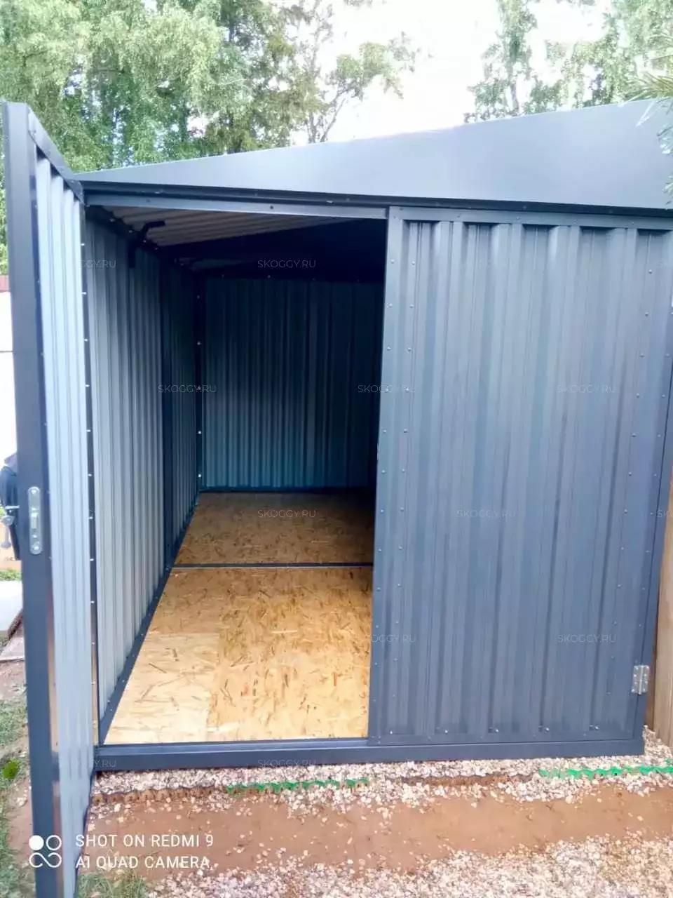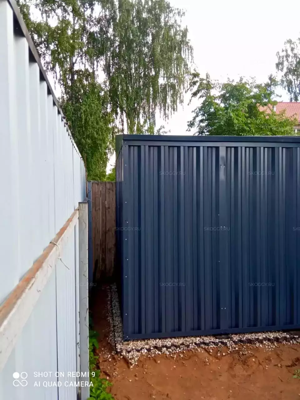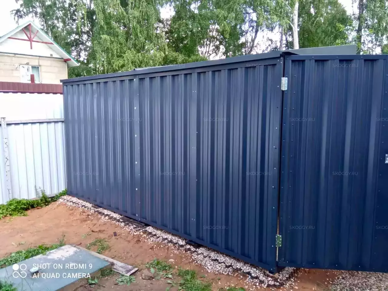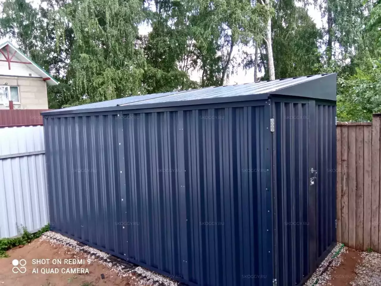 Изначально хотел стандартный контейнер в цинковом оттенке, но увидев нашу палитру, передумал и выбрал брутальный антрацитово-серый цвет. И только посмотрите, как он вписался на участок - шикарно, не правда ли?
