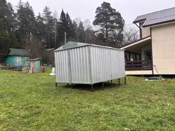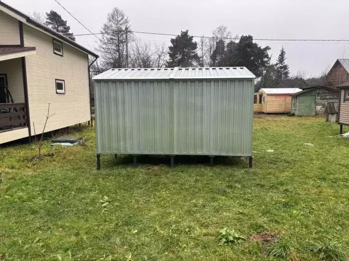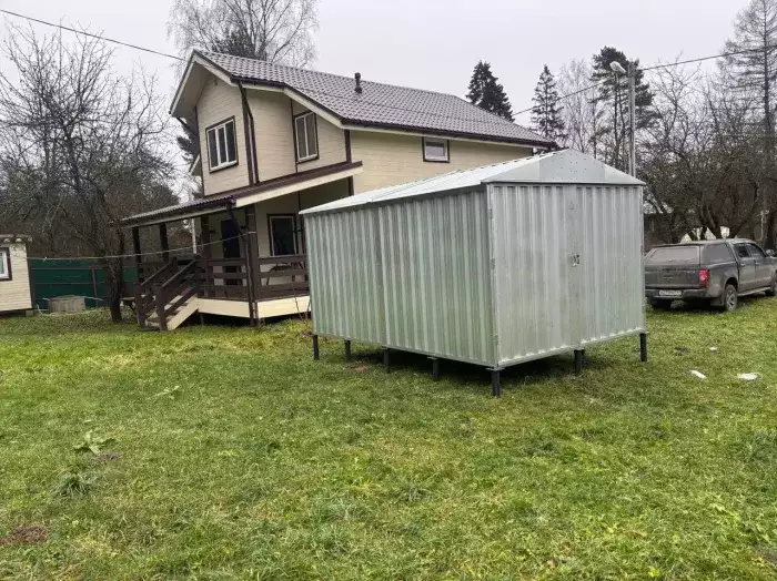 Площадка под постройку была готова, заказчик воспользовался услугами установки контейнера на бетонные блоки и сборкой на участке.