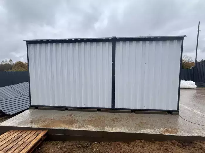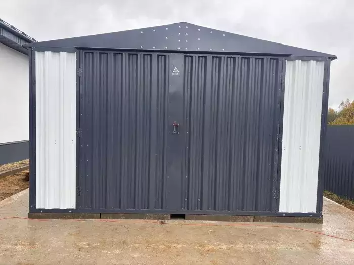 Проект: 2-метровый хозблок в цинковом цвете для хранения пеллетов.
