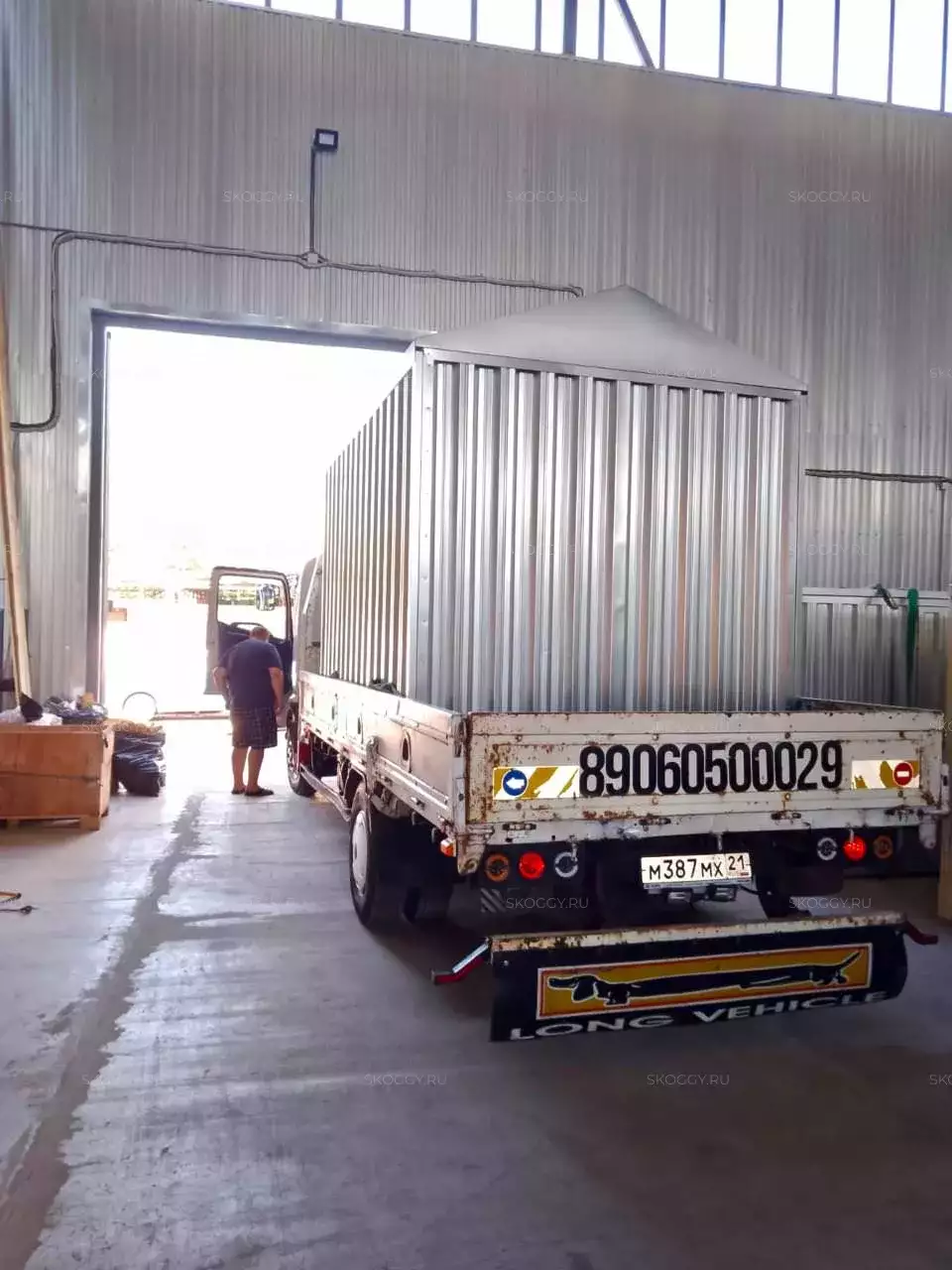 После презентации продукции Максим решил не затягивать и сразу выбрал подходящий для него вариант - стандартный блок-контейнер длиной 4 метра в стандартном цвете цинк с двускатной крышей. Отличный вариант для организации хранения - много места внутри, крыша надежно защищает от любой непогоды.