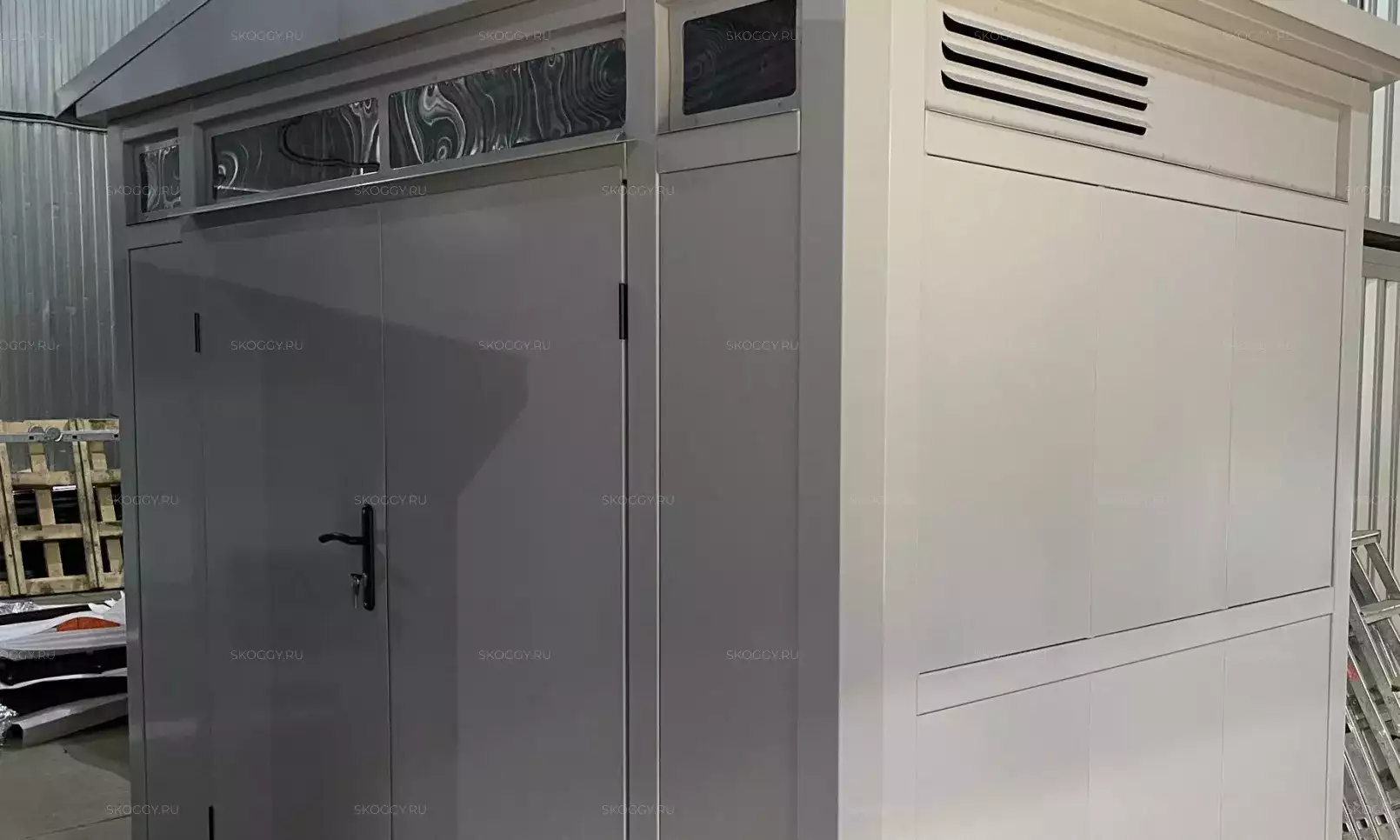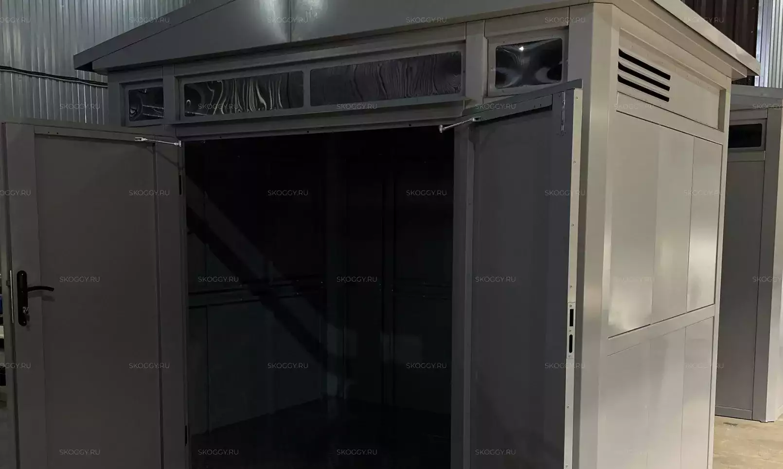 Проект: 4-метровый хозблок для хранения с плоской крышей в графитовом цвете.