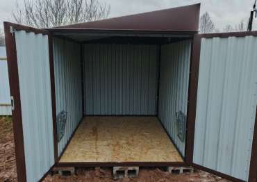 Нами была изготовлена стандартная 3-метровая конструкция с односкатной крышей и торцевой воротной группой в неизменно популярном шоколадно-коричневом цвете RAL 8017.