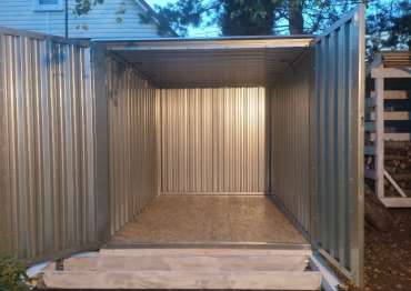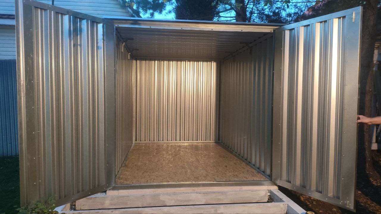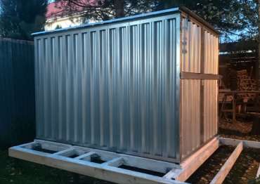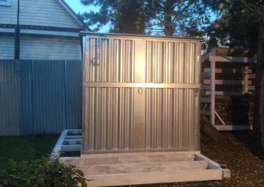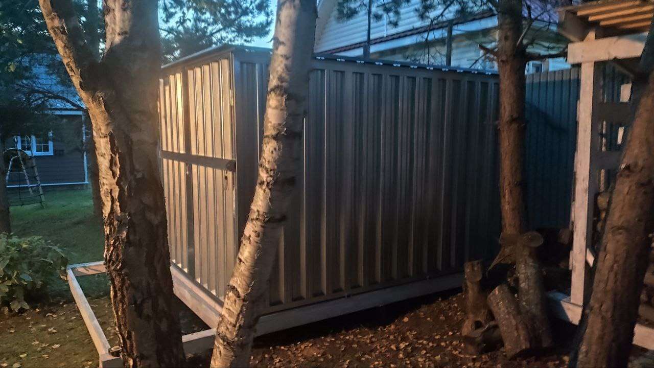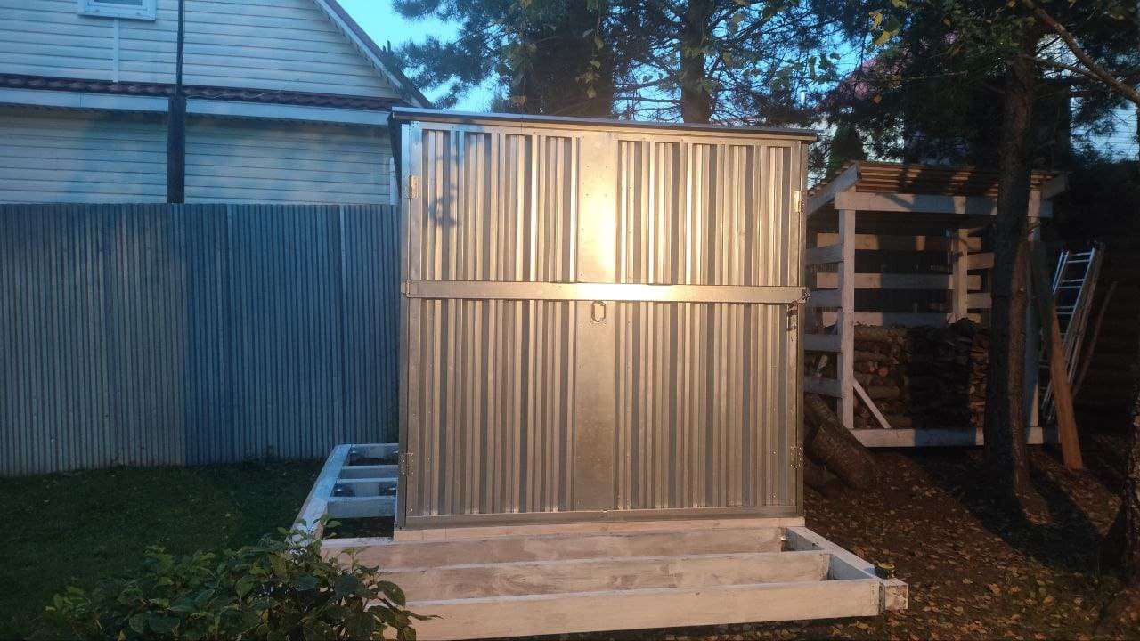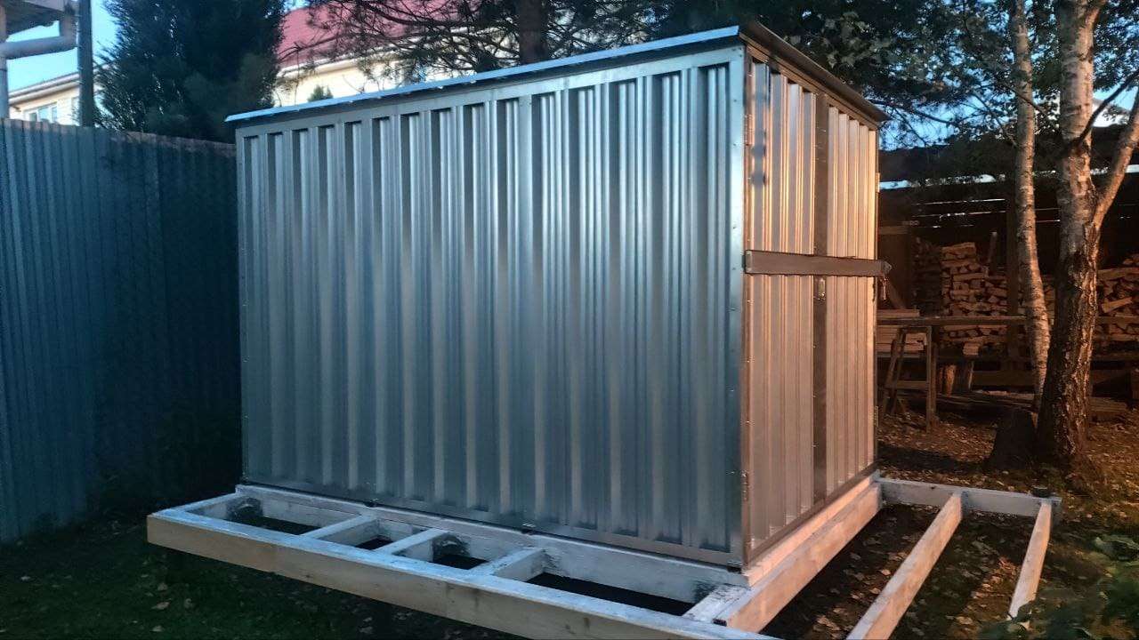 Проект: 3-метровый хозблок для хранения садового инвентаря в цинковом цвете.