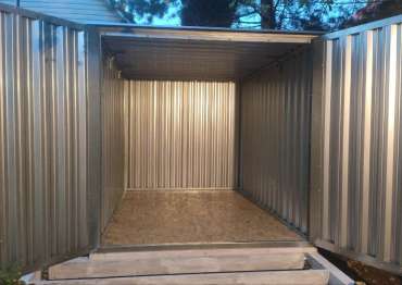 Нами была изготовлена стандартная 3-метровая конструкция с плоской крышей и торцевой воротной группой в блестящем цинковом цвете.