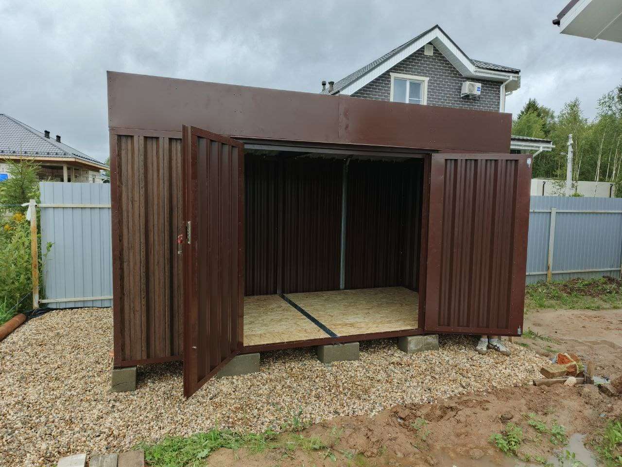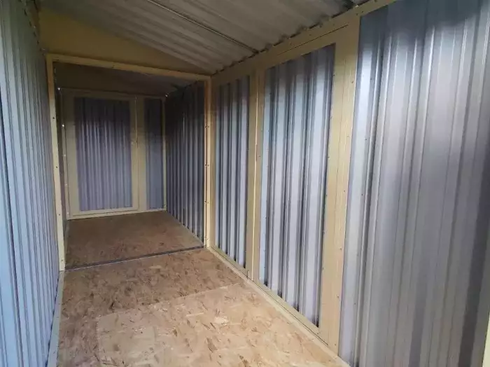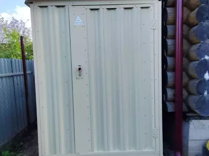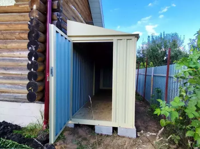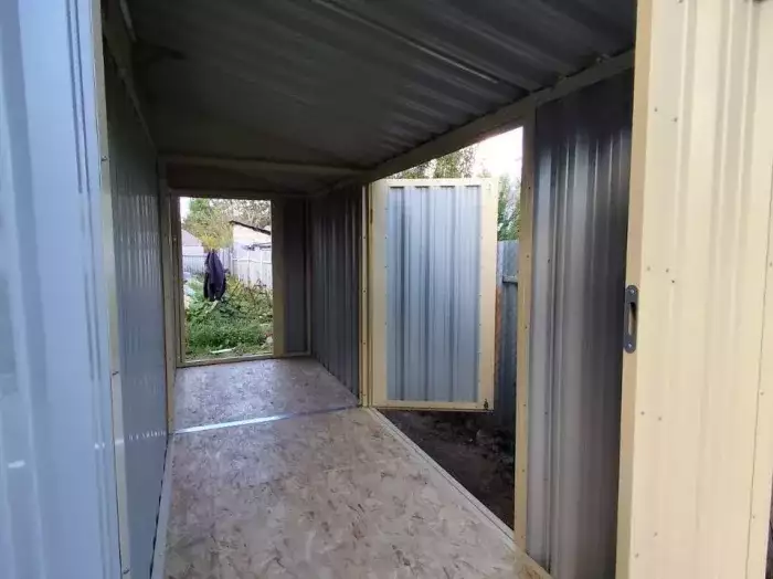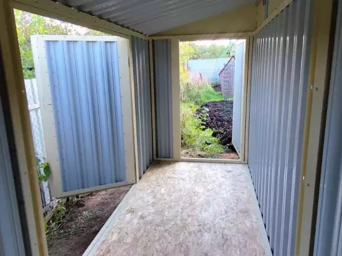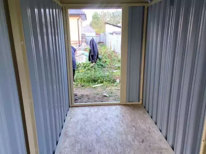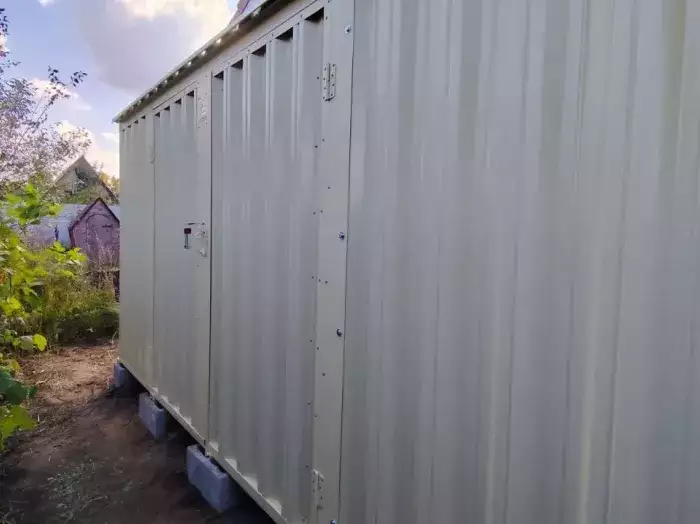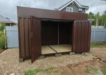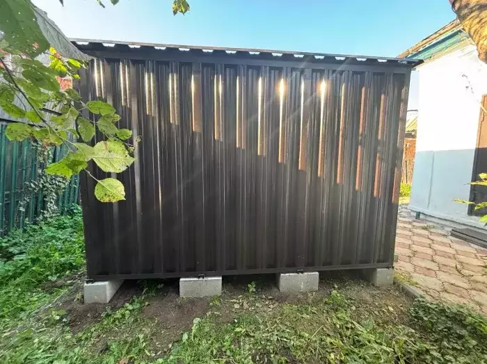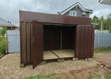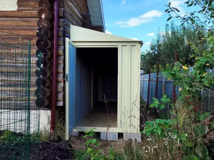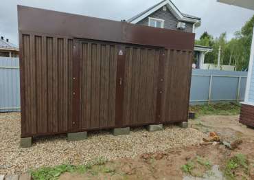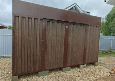 Проект: 4-метровый хозблок для хранения садового инвентаря в расцветке "под дерево".