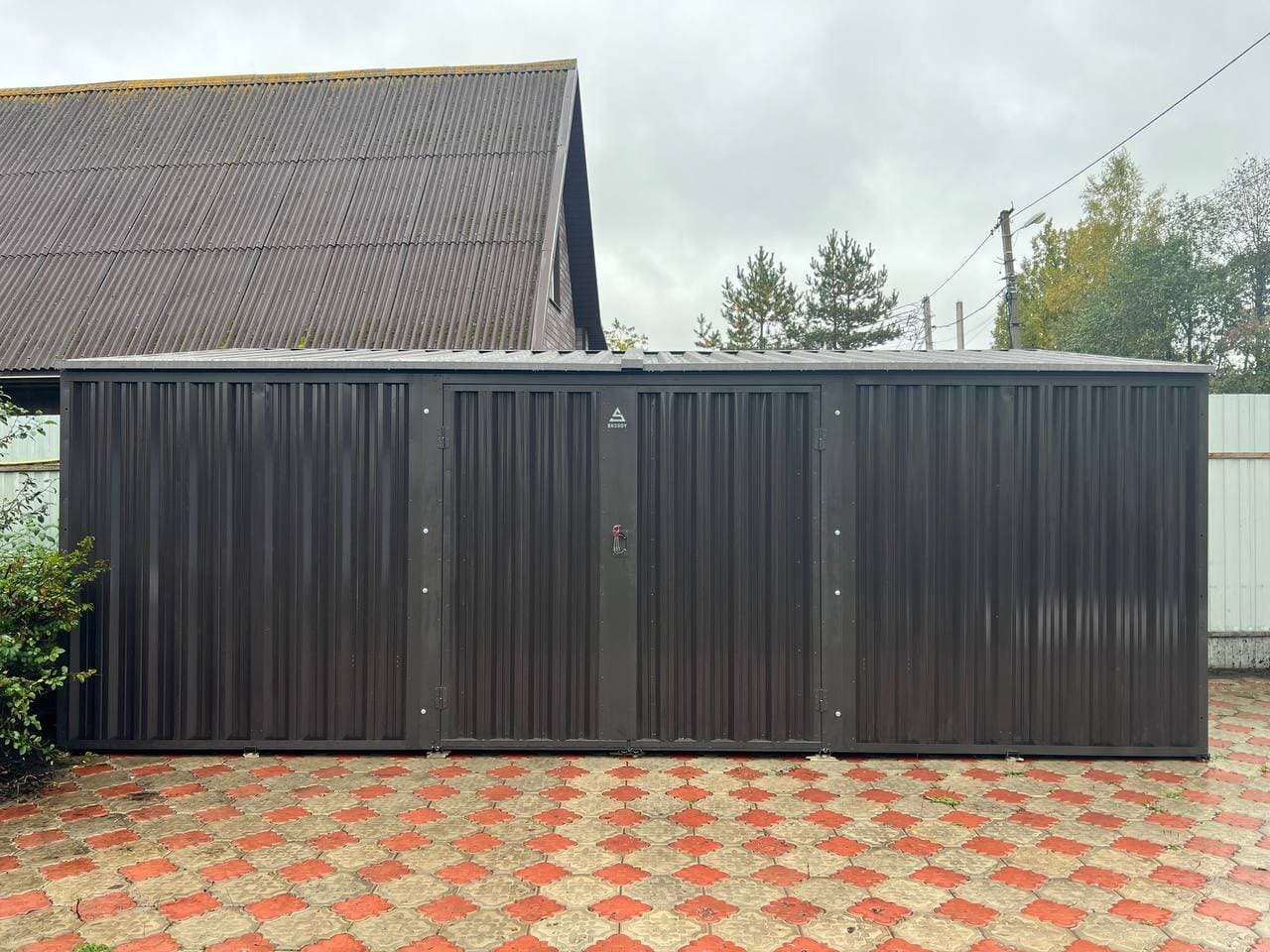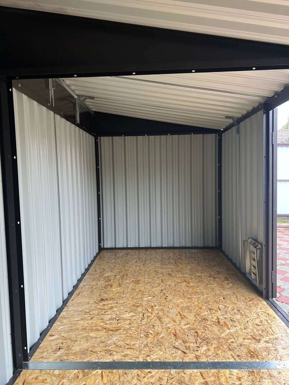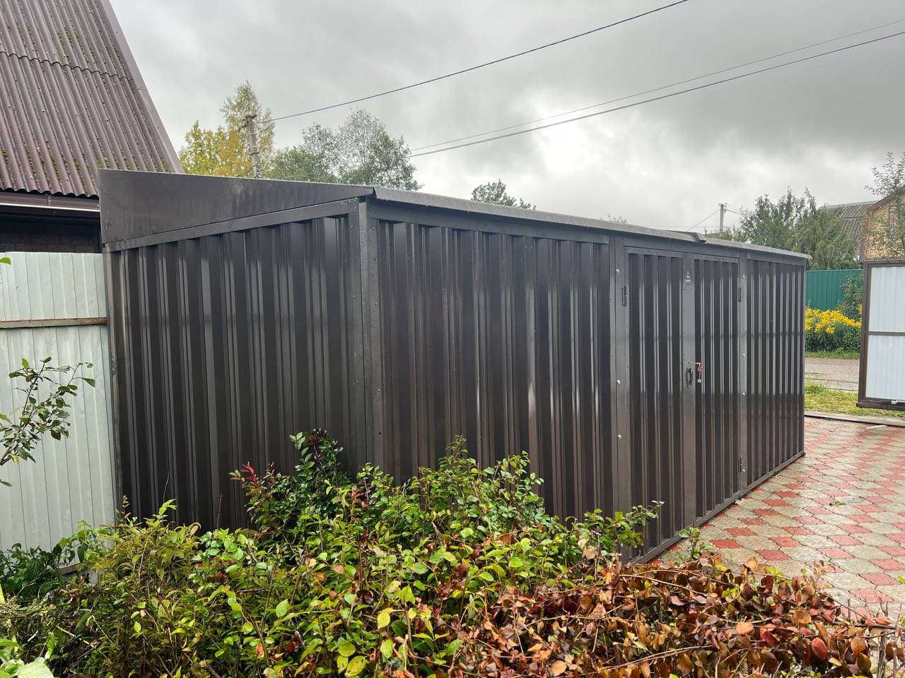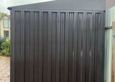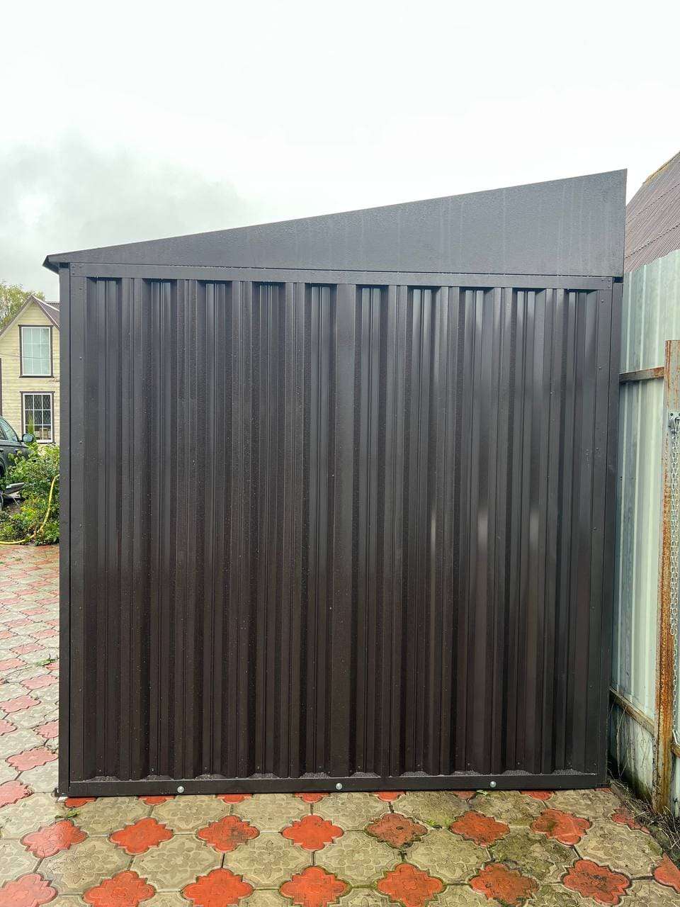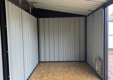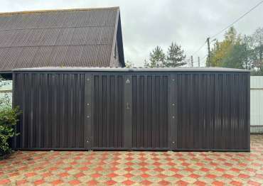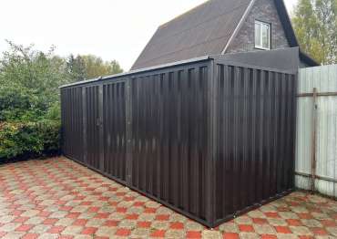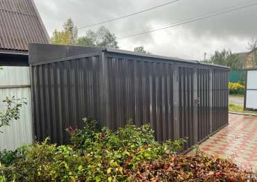 Нами была изготовлена стандартная 6-метровая конструкция с односкатной крышей и боковой воротной группой в благородном серо-коричневом цвете RAL 8019.