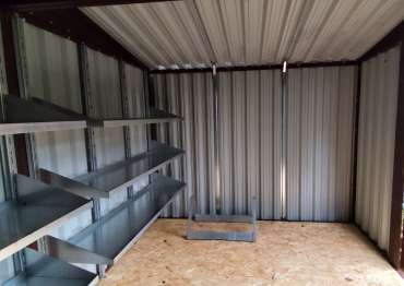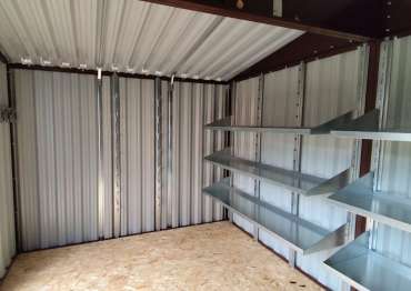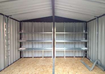 Дополнительно хозблок оборудован удобными стеллажами с тремя полками, системой хранения инвентаря, системой подвесов, а также напольной системой хранения шин.