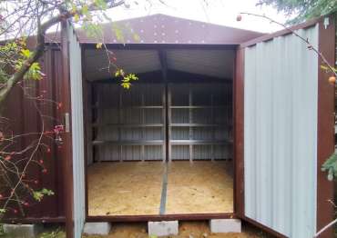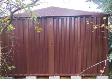 Нами была изготовлена широкая конструкция 3 х 4,22 х 2,69 м с двускатной крышей и торцевой воротной группой в неизменно популярном шоколадно-коричневом цвете RAL 8017.