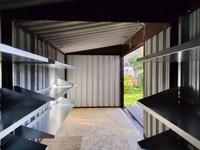 Дополнительно хозблок был оборудован световым окном размером 90 х 30 см для проникновения естественного света внутрь постройки.