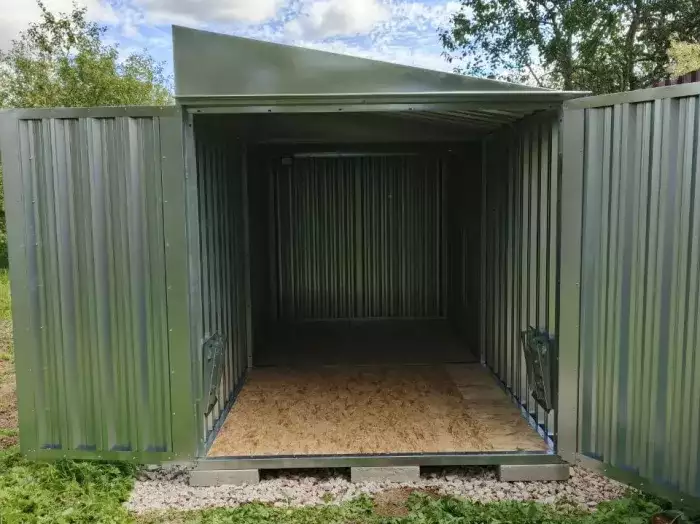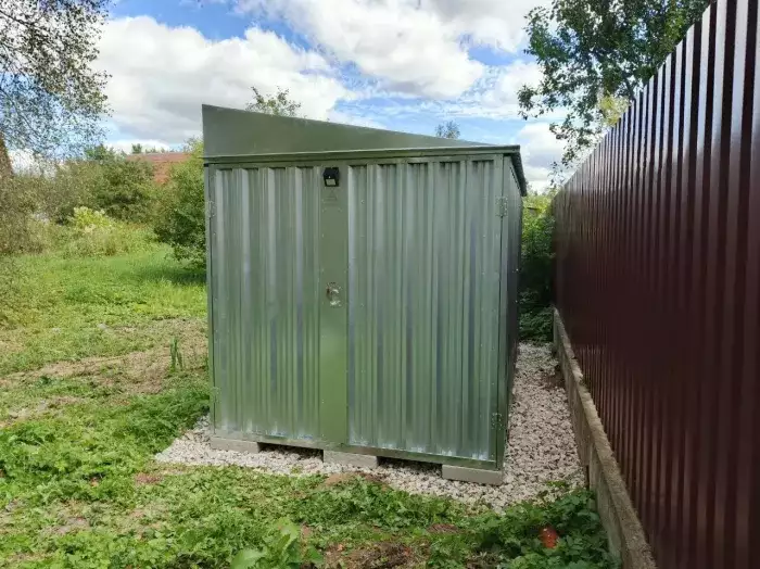 Проект: 4-метровый хозблок для хранения велосипедов и садового инвентаря в комбинированной расцветке.