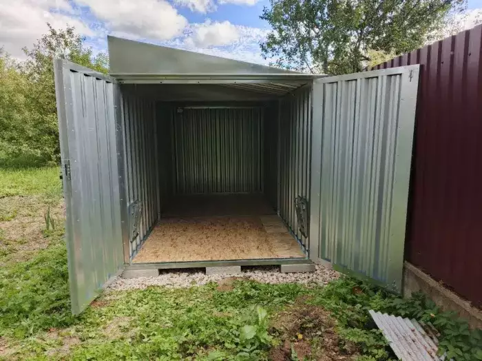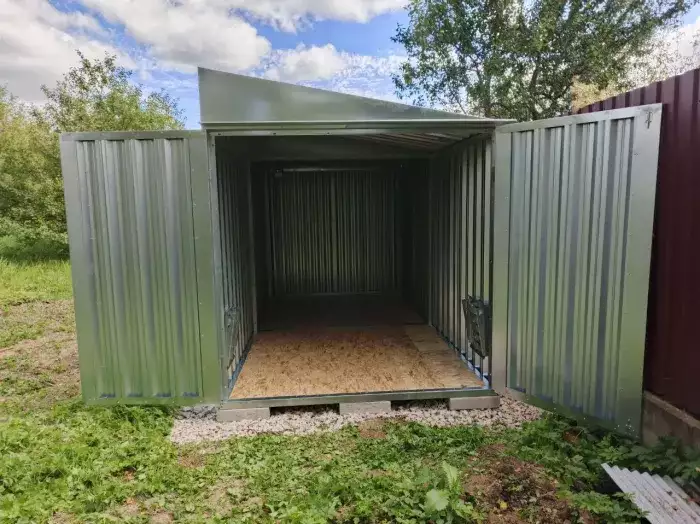Заказчик этого проекта прежде, чем сделать приобретение, приезжал к нам на выставочную площадку для того, чтобы вживую увидеть наши конструкции и оценить их качество. Очень разумный подход! Постройка заказчику нужна была для хранения велосипедов и садового инвентаря.