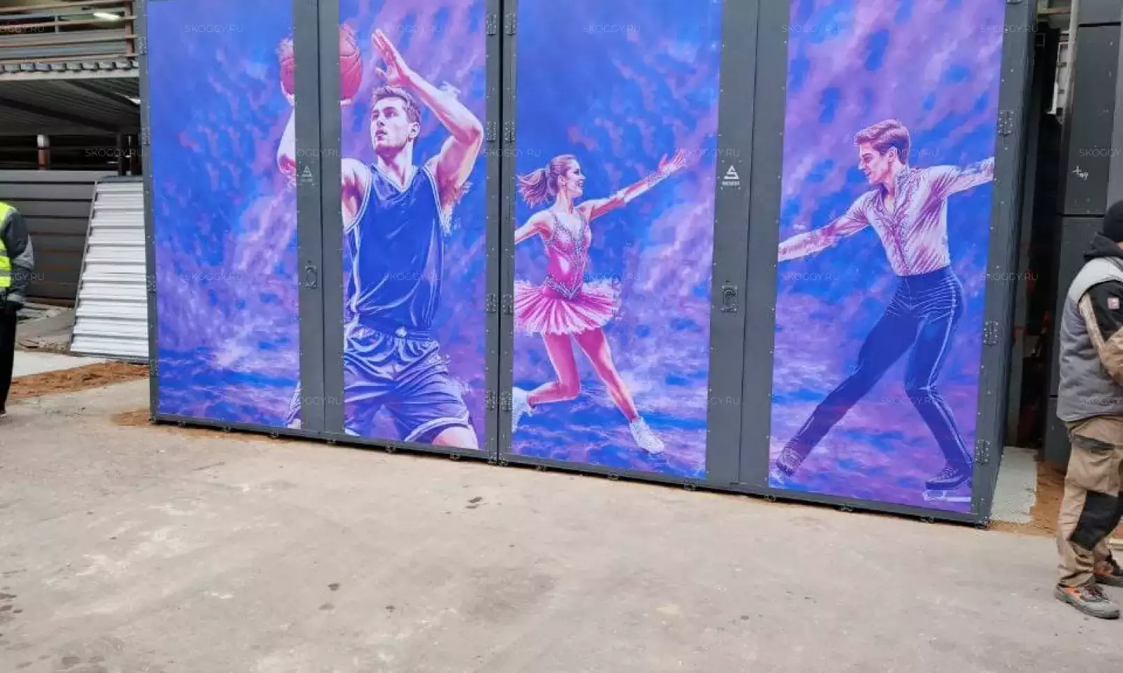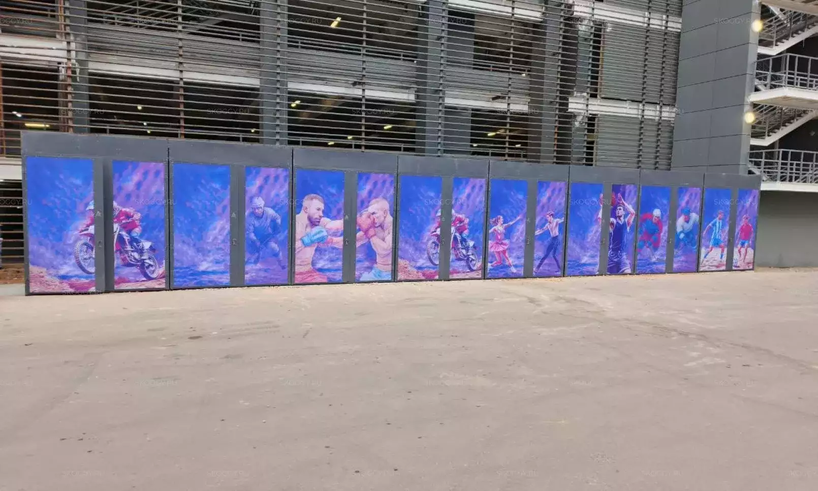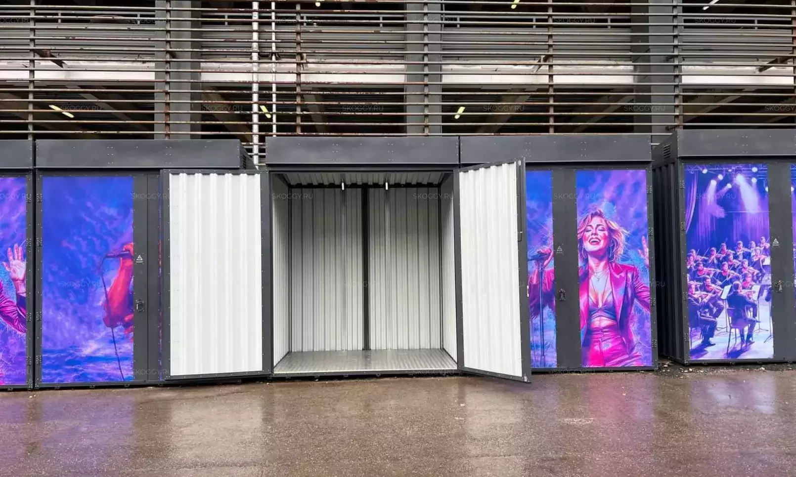 Нами была изготовлена конструкция индивидуальных размеров 6 х 1,3 х 2,3 м с двумя перегородками и тремя входными дверями шириной 1 м по боковой стороне в блестящем цинковом цвете. Каждый отсек постройки получился шириной по 2 метра.