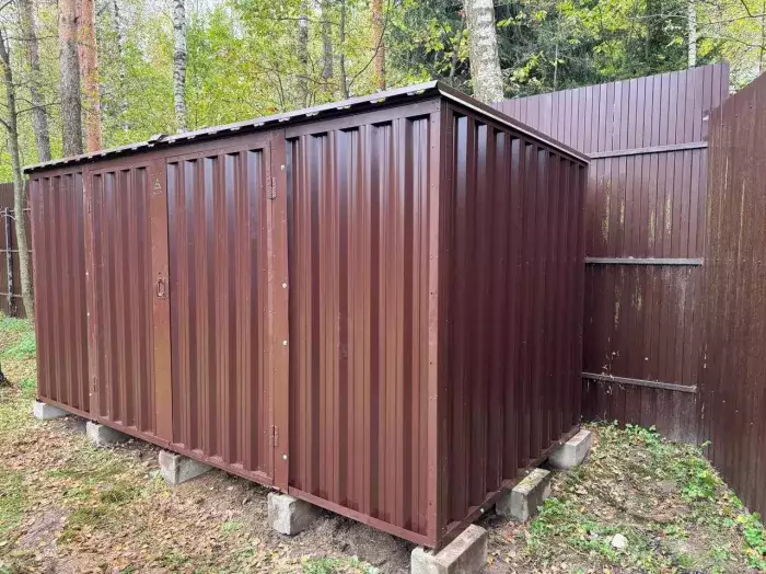 Обратилась заказчица, которой был необходим хозблок на участок. Изготовили 6-метровую конструкцию с двускатной крышей и торцевой дверью.