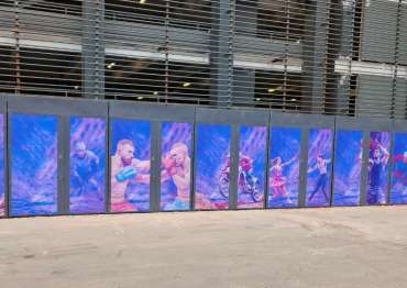 Нами было изготовлено 19 конструкций индивидуальных размеров с односкатными крышами и боковыми воротными группами в строгом графитовом цвете с нанесением ярких и красочных принтов.