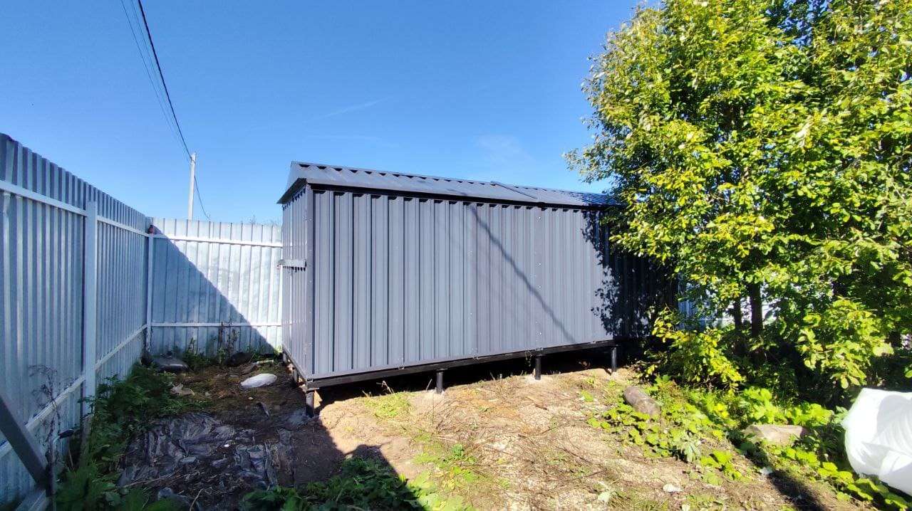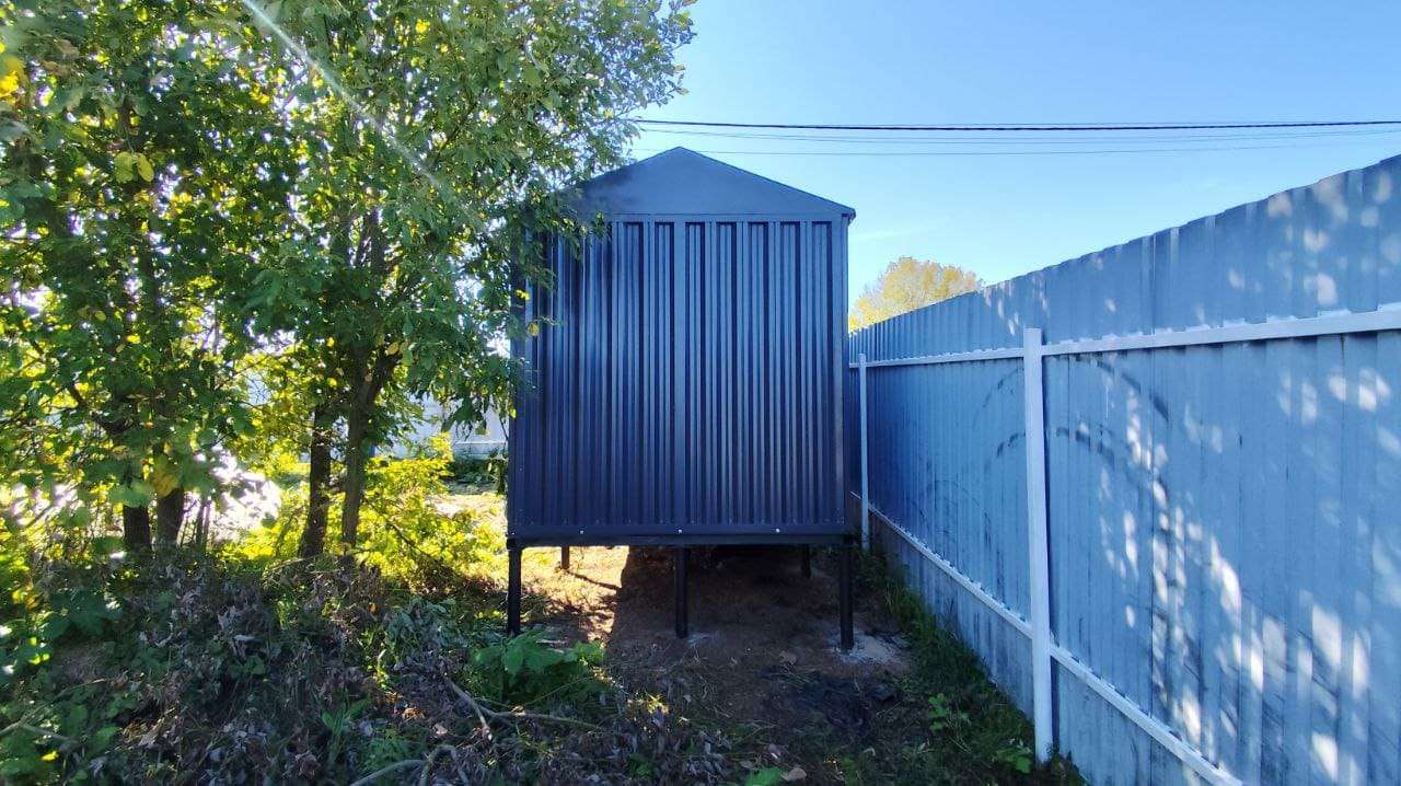 Доставляли хозблок на участок заказчика манипулятором в разобранном виде. Нашими специалистами предоставлялась услуга по сборке изделия. Справились за 3 часа.