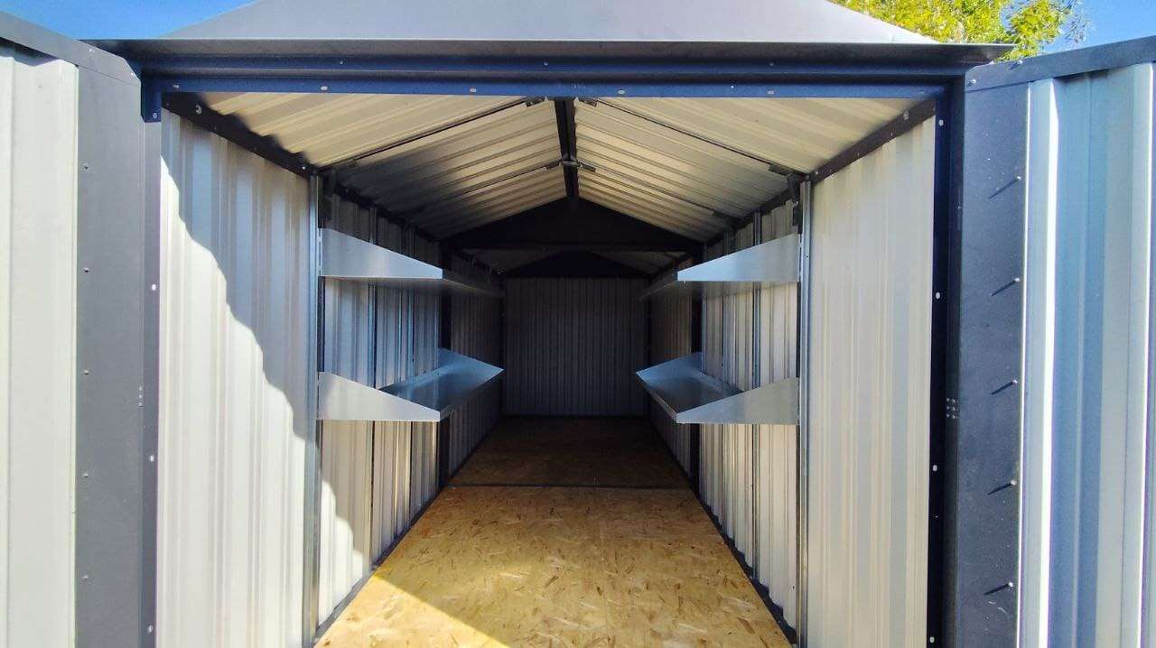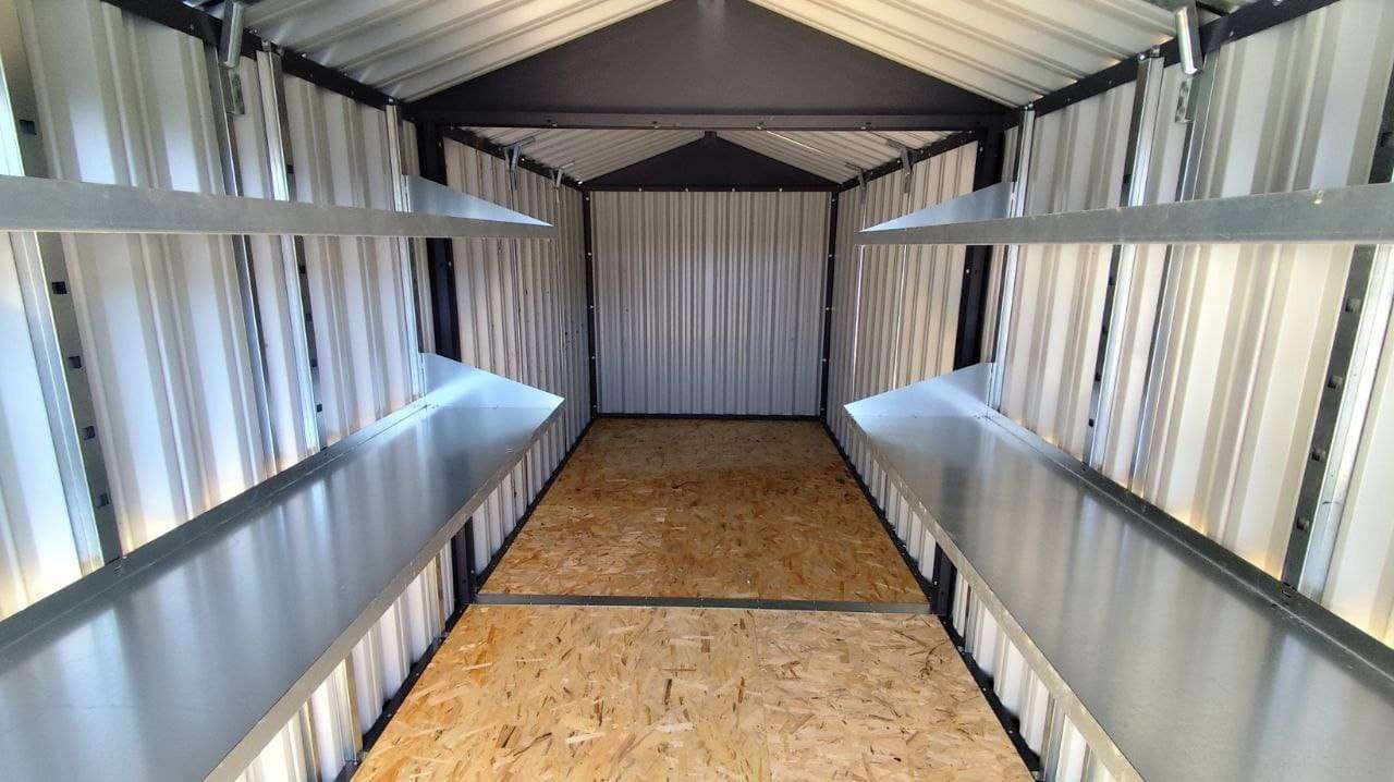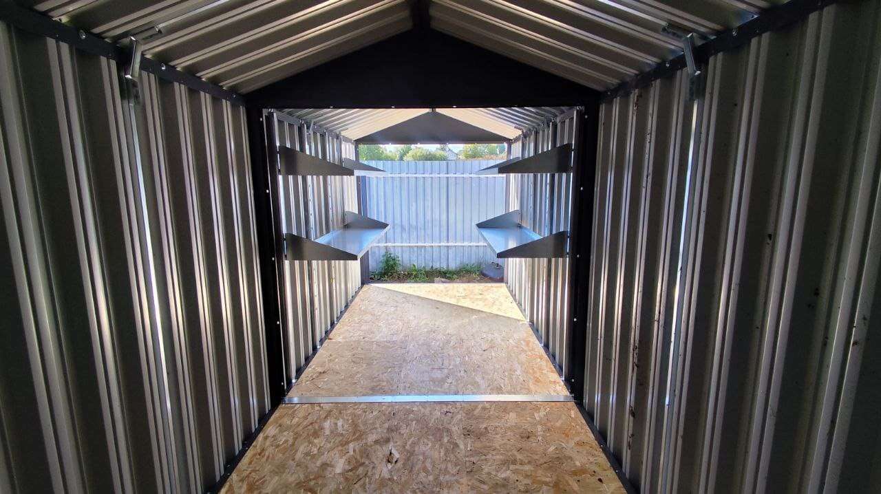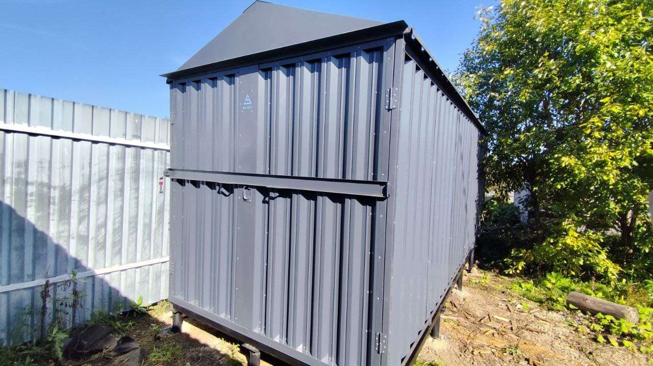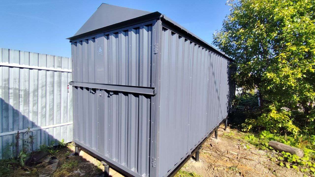 Проект: 6-метровый хозблок для хранения хозяйственных принадлежностей и инструментов в графитовом цвете.