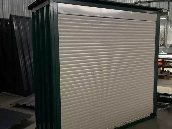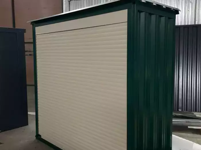 В качестве реализации был выбран 4-метровый блок-контейнер с воротами на длинной стороне с односкатной крышей.